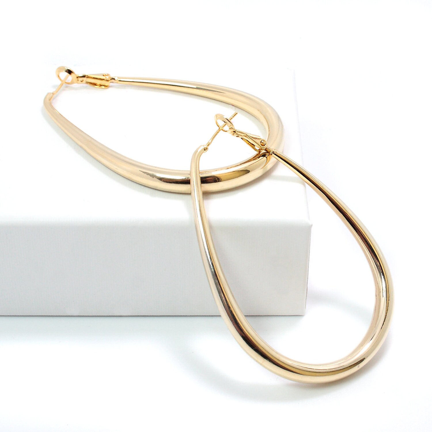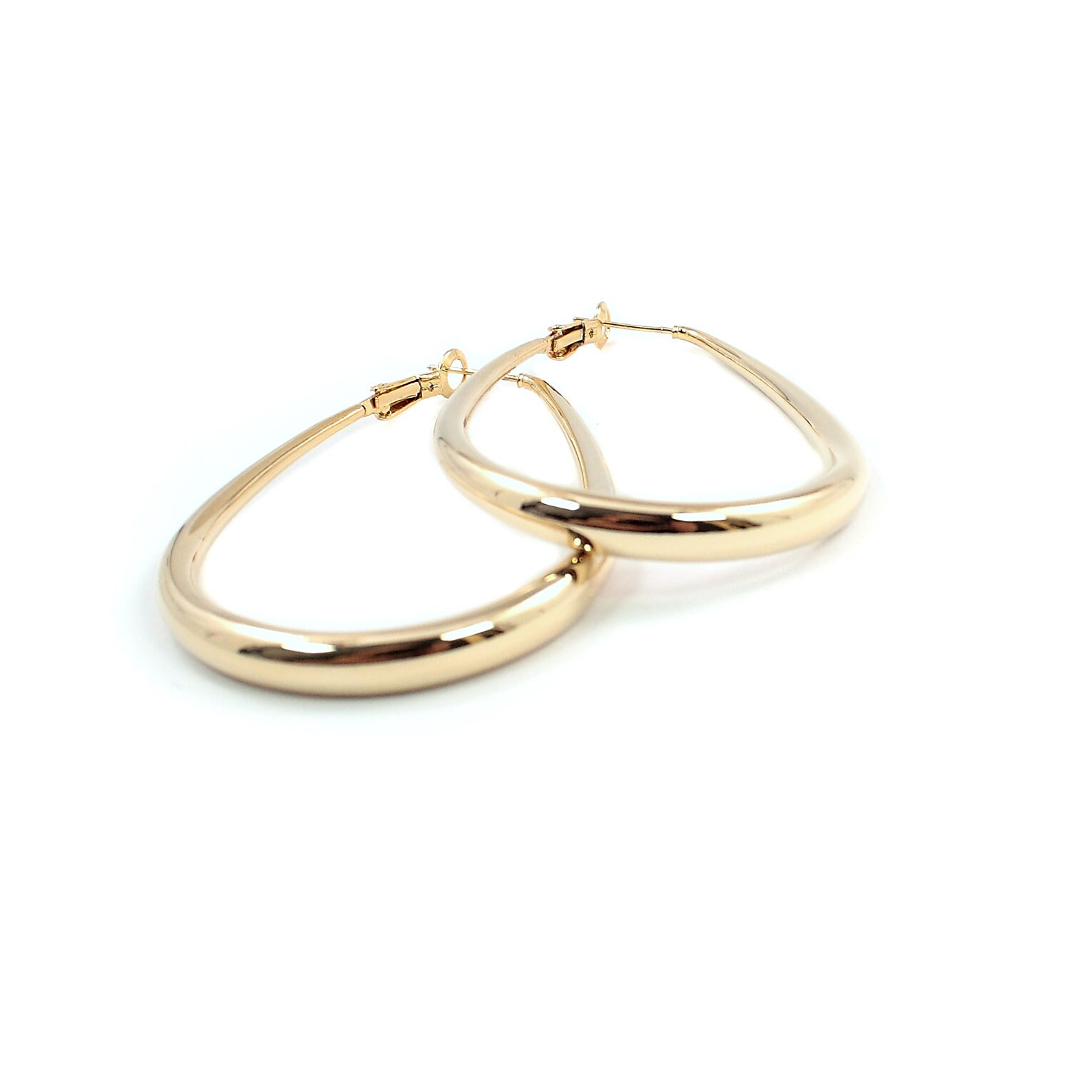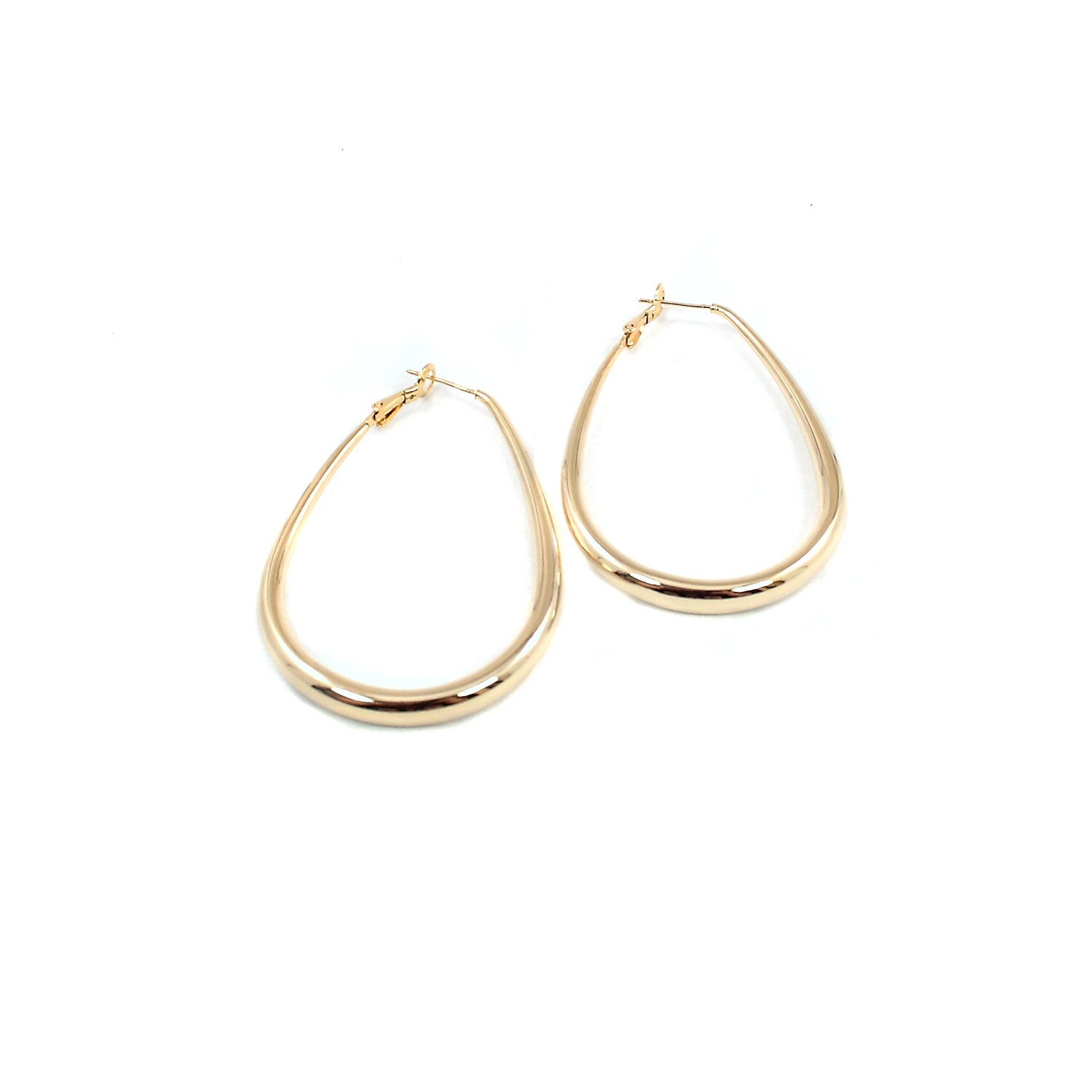Elongated hoop earrings in gold alloy.