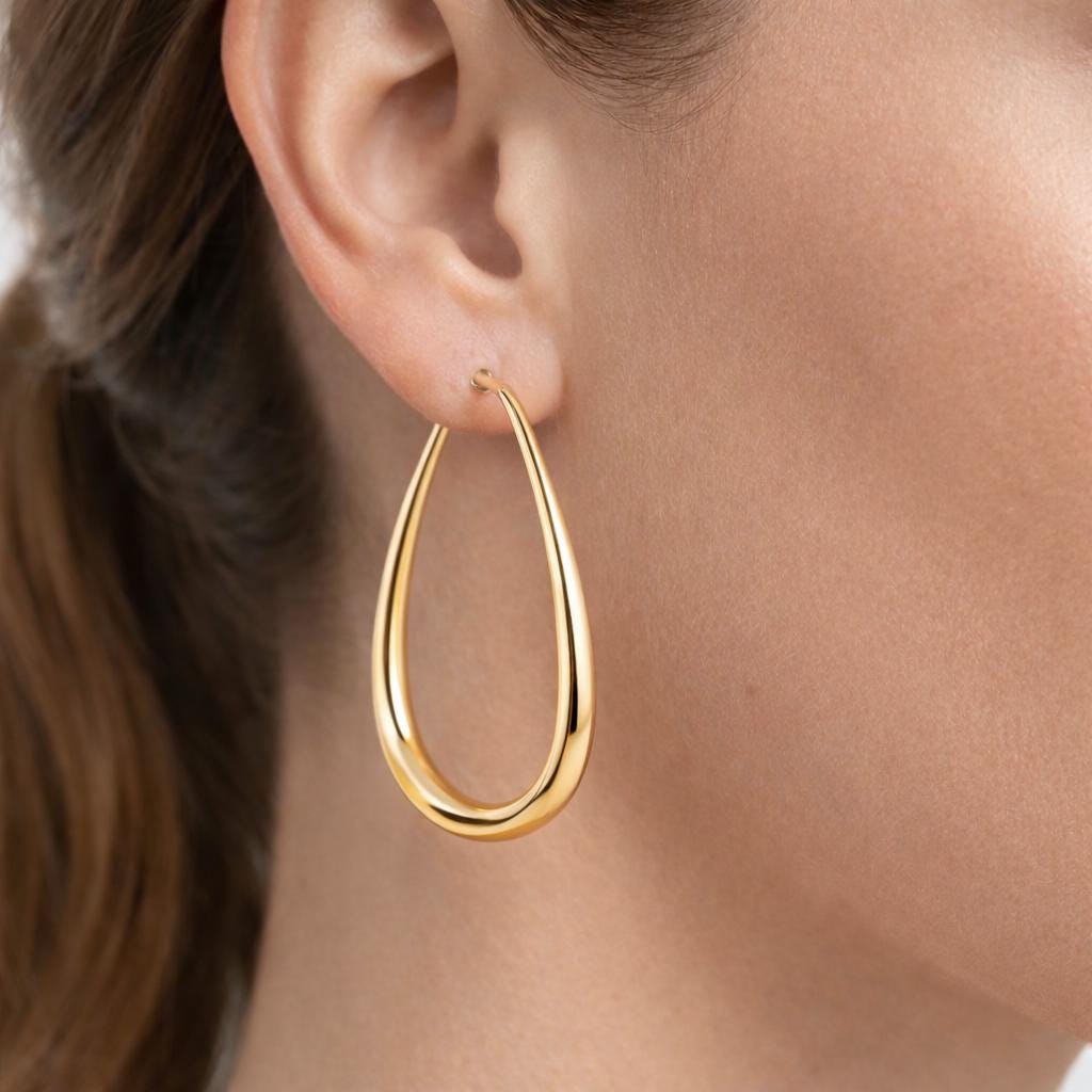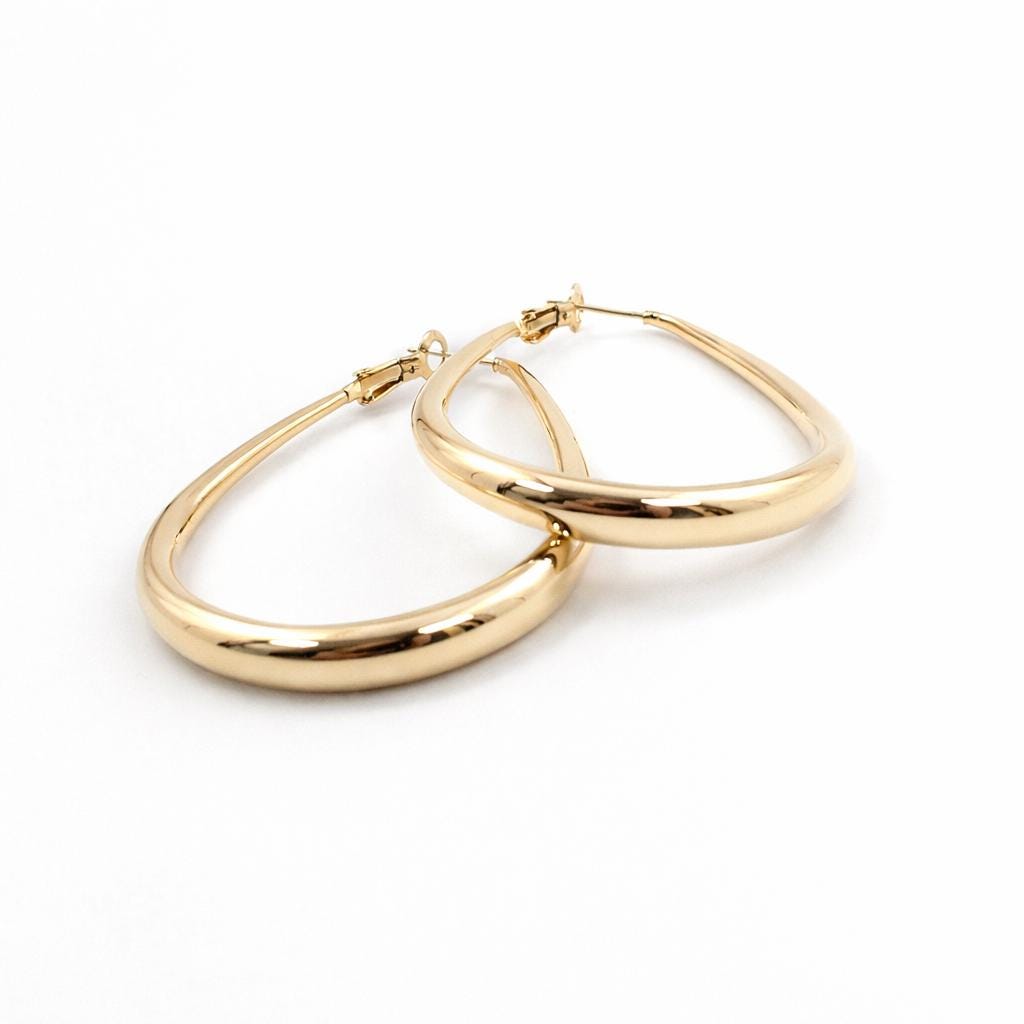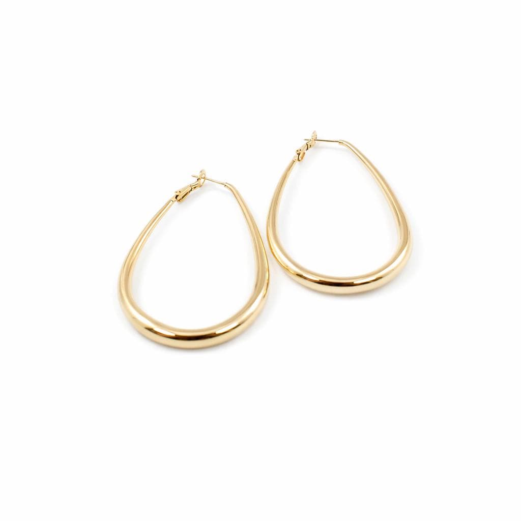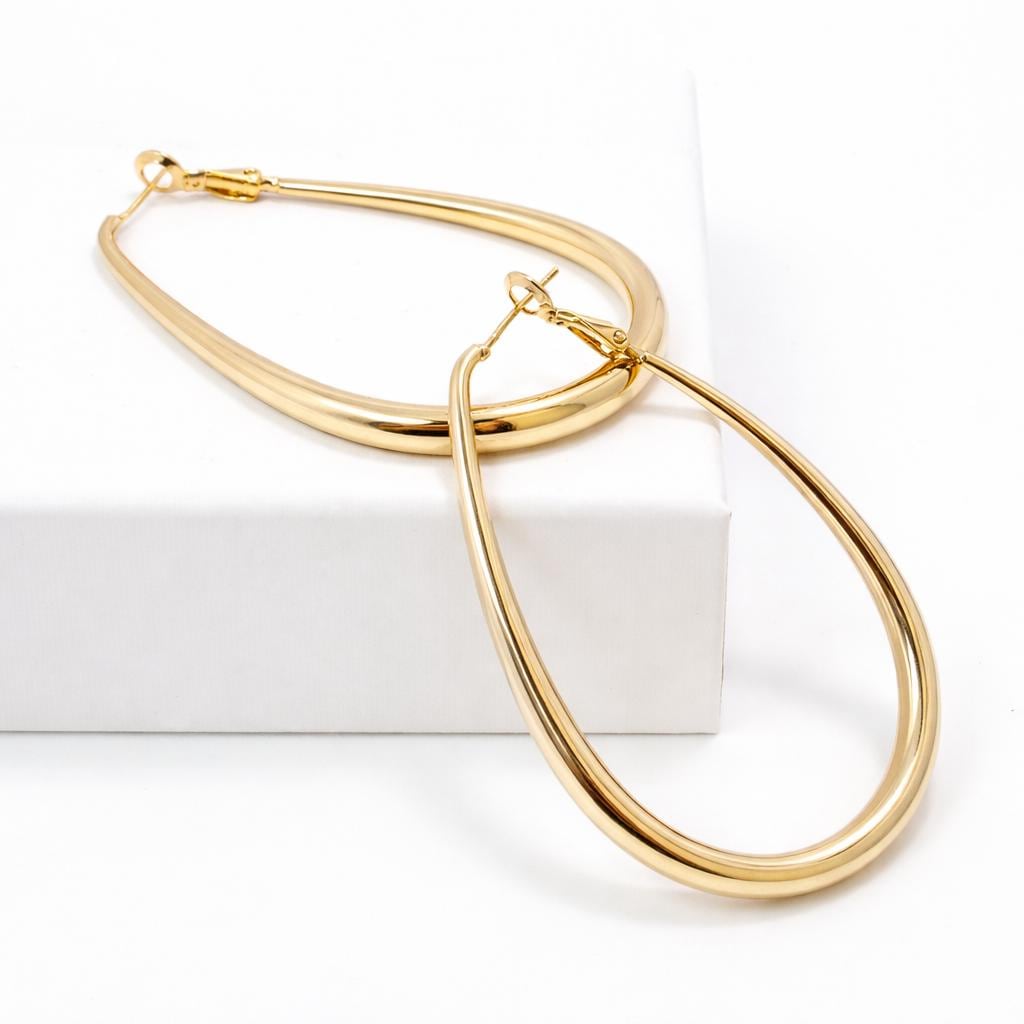 Elongated hoop earrings in gold alloy.