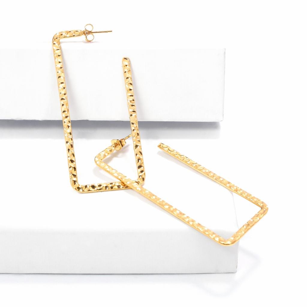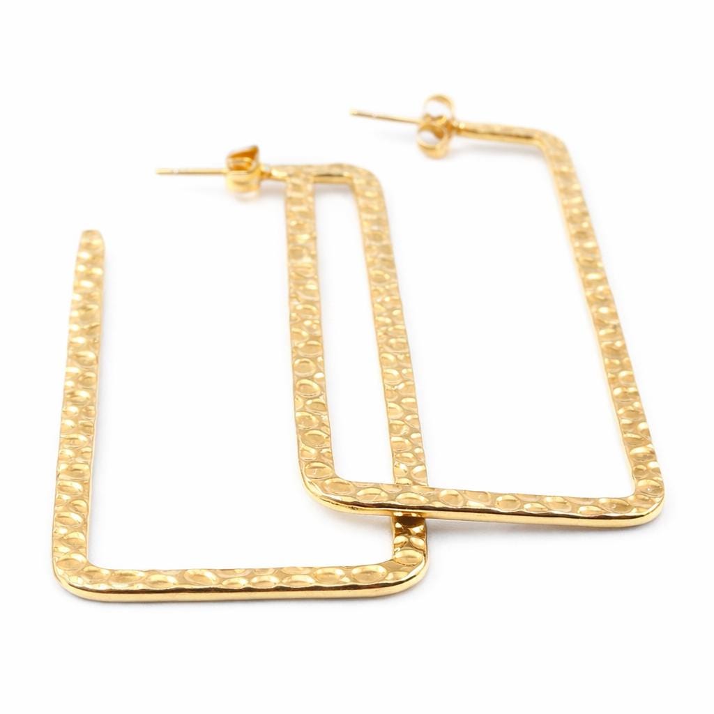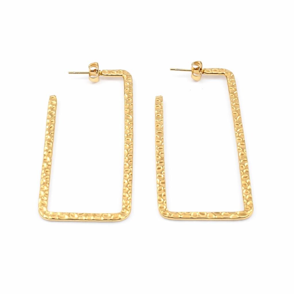 Rectangular hoop earrings in hammered gold-plated stainless steel.