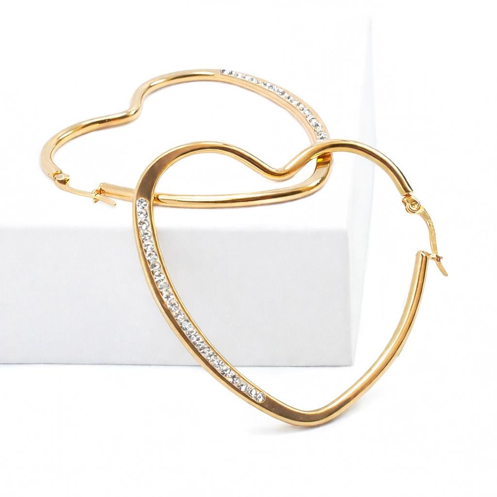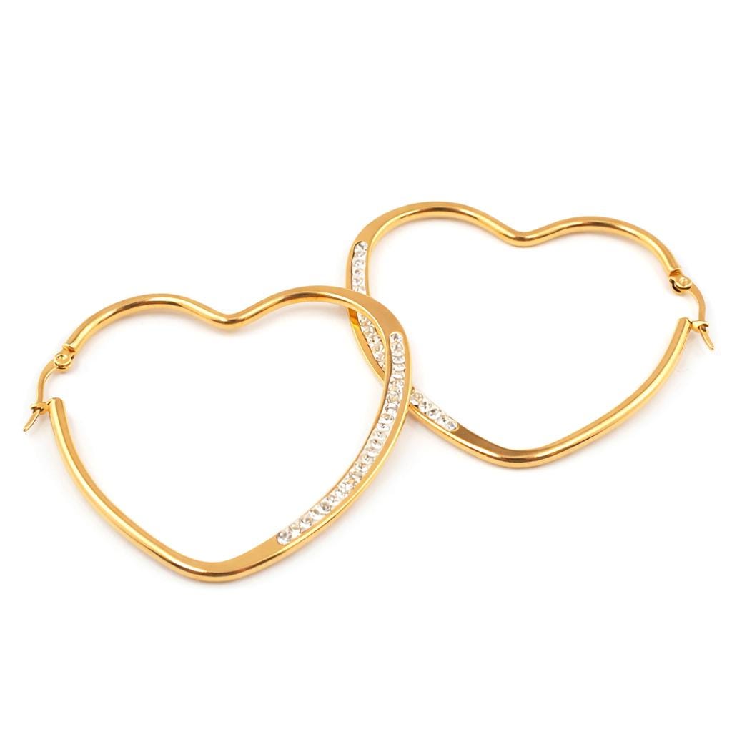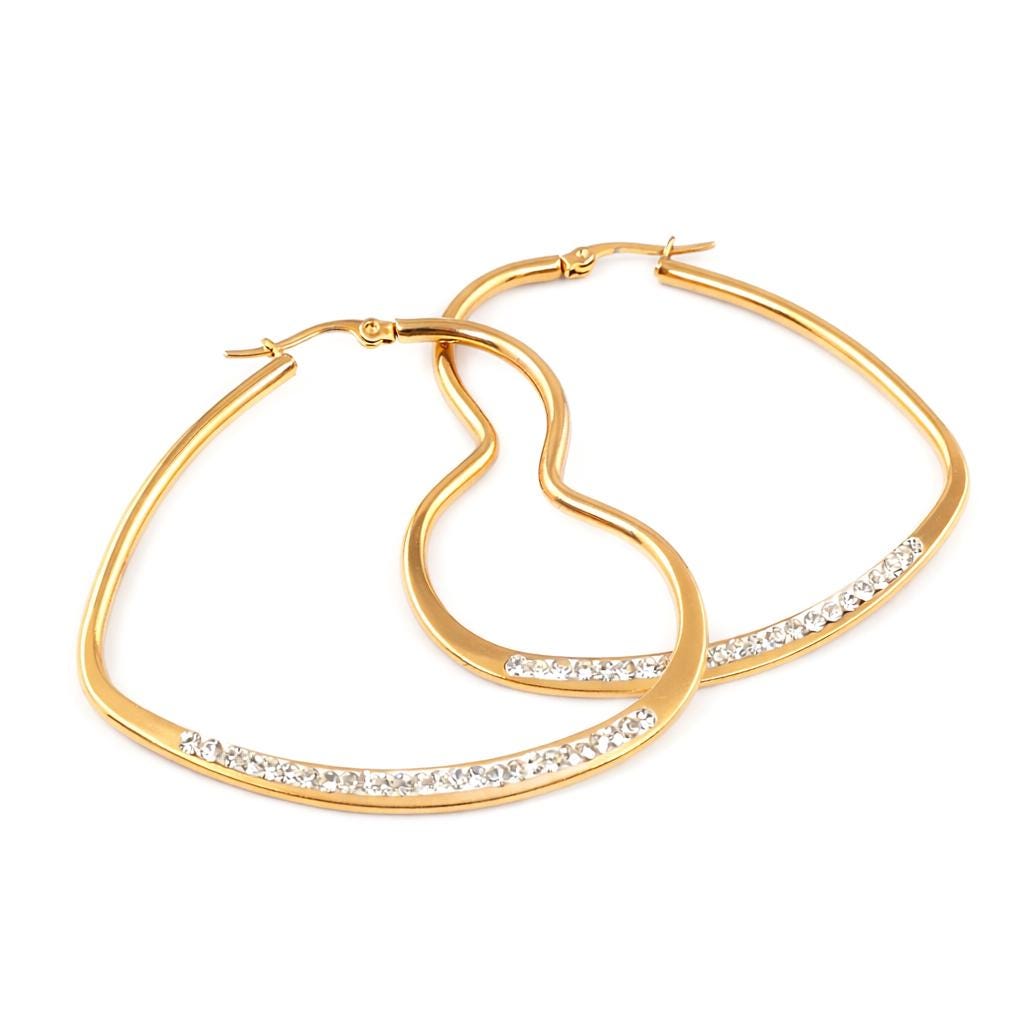 Gold-plated stainless steel and rhinestone hoop earrings.