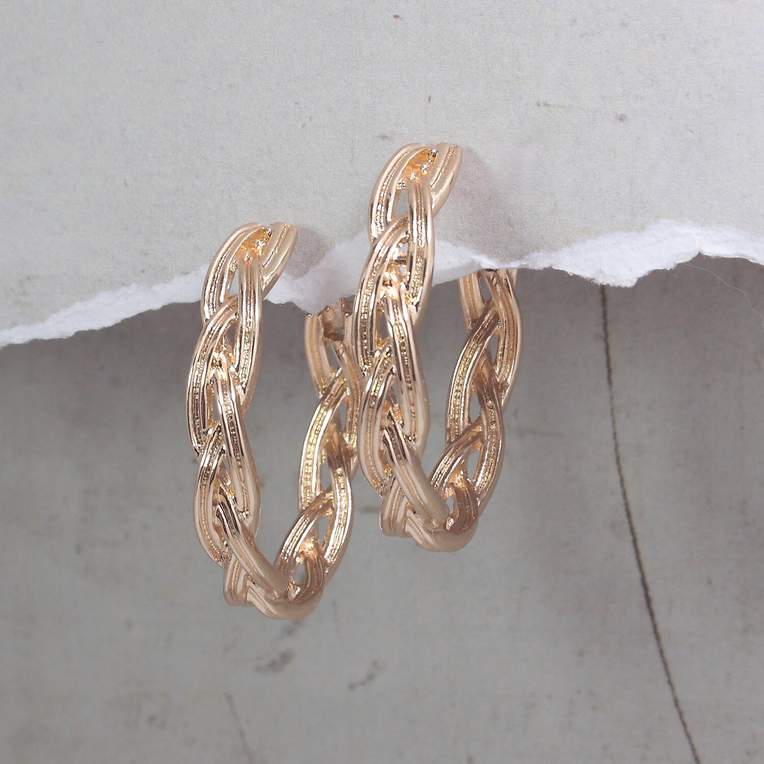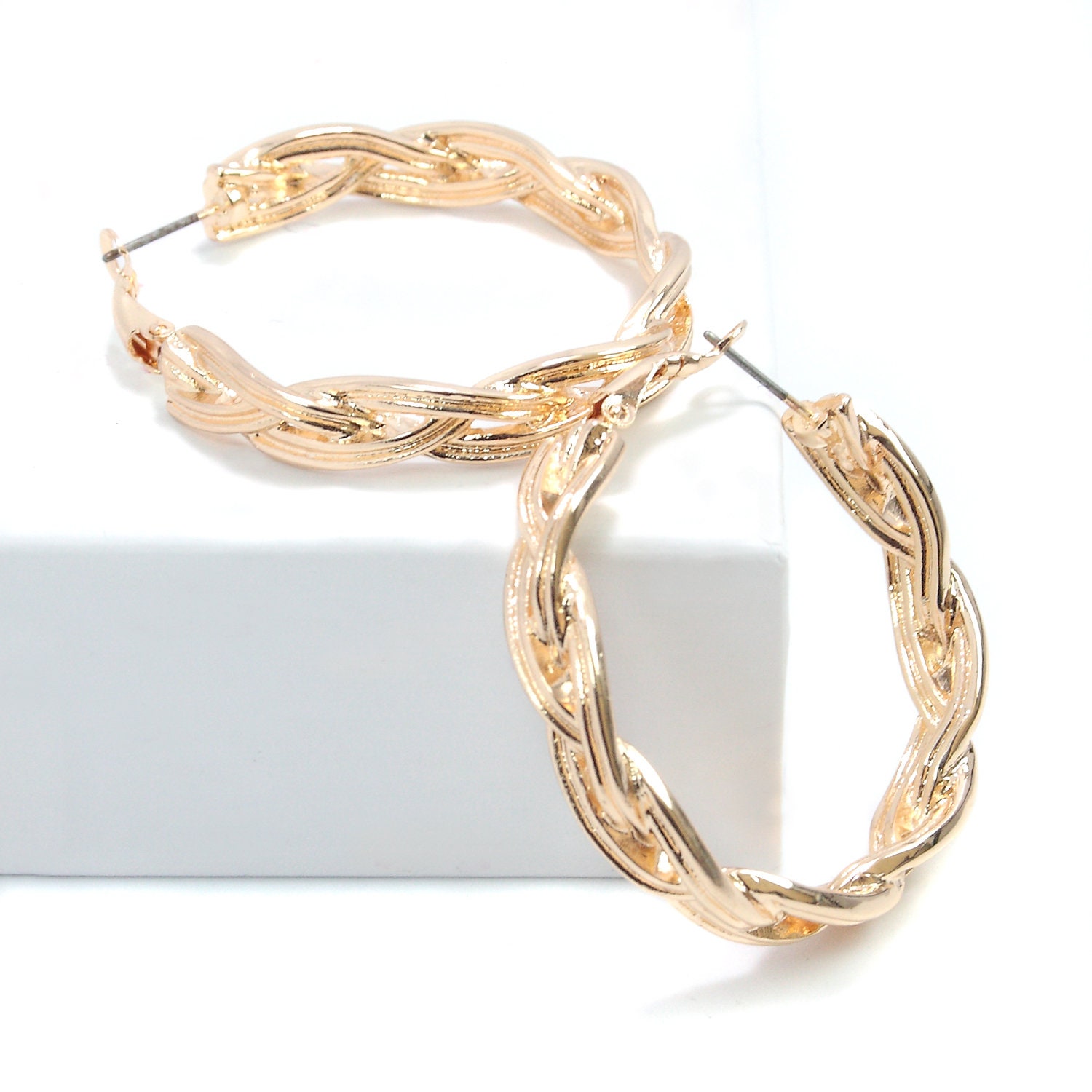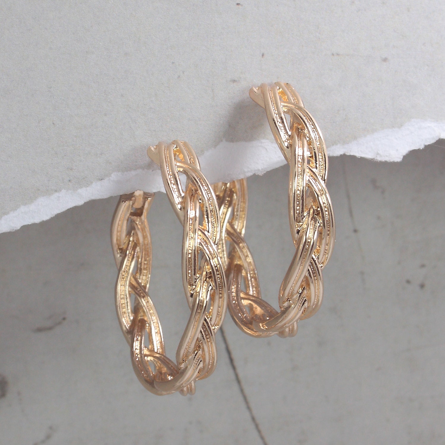 Boucles d'oreilles créoles torsadées en laiton doré.