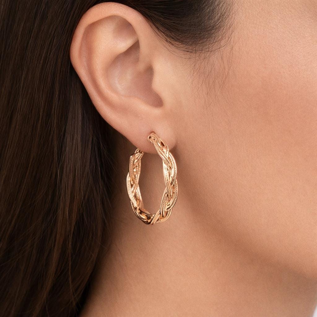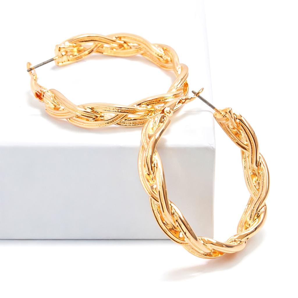 Boucles d'oreilles créoles torsadées en laiton doré.