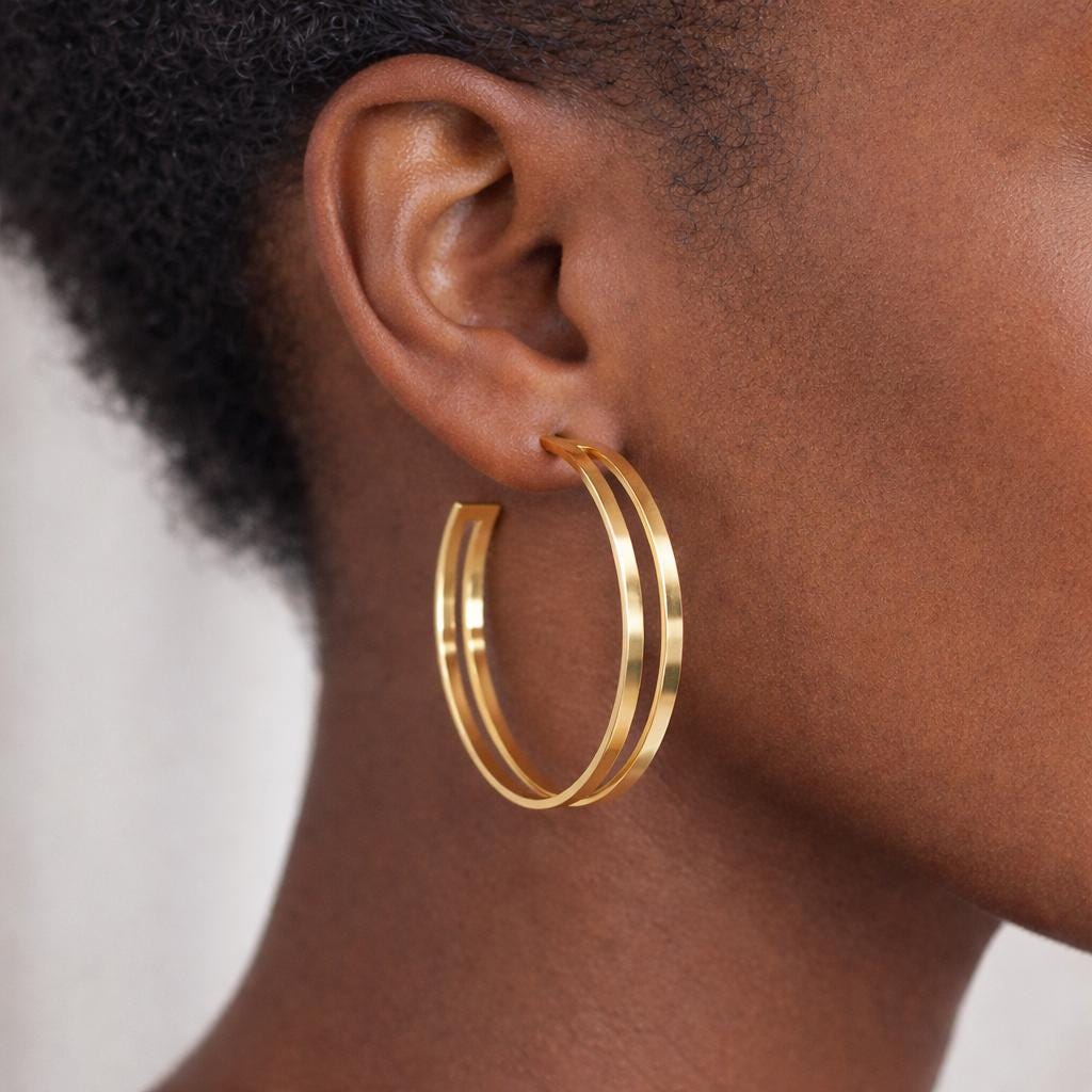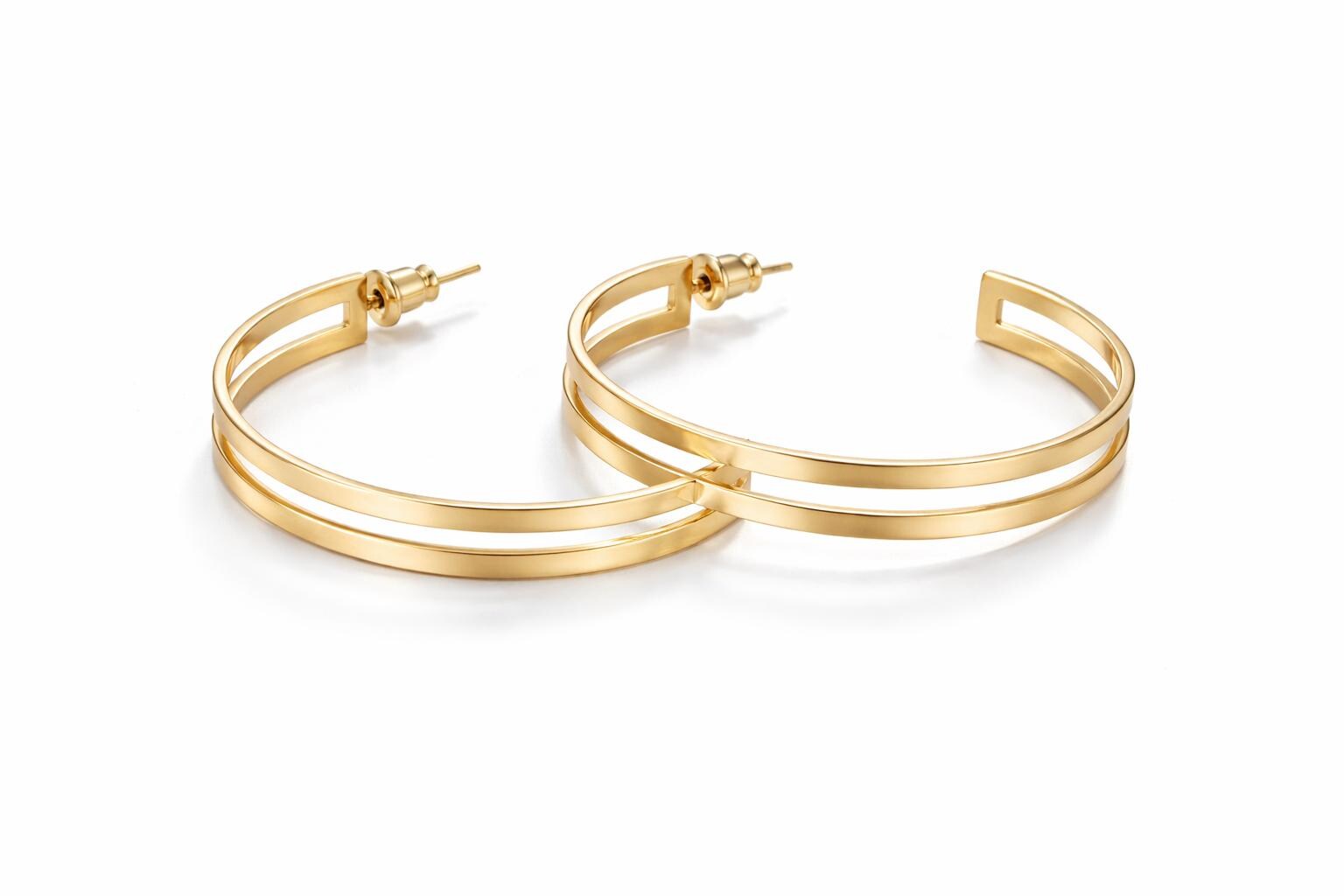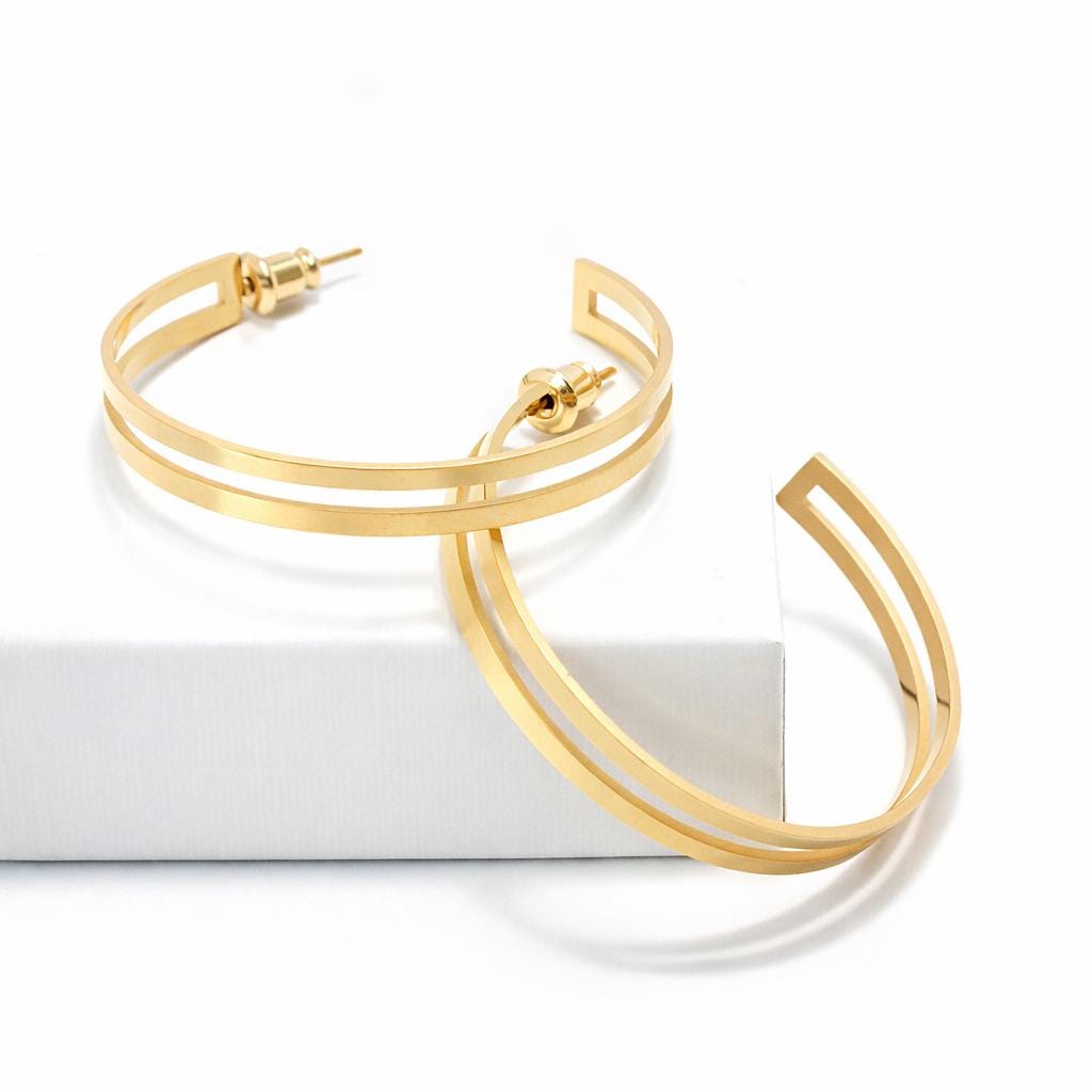 Gold-plated stainless steel hoop earrings.
