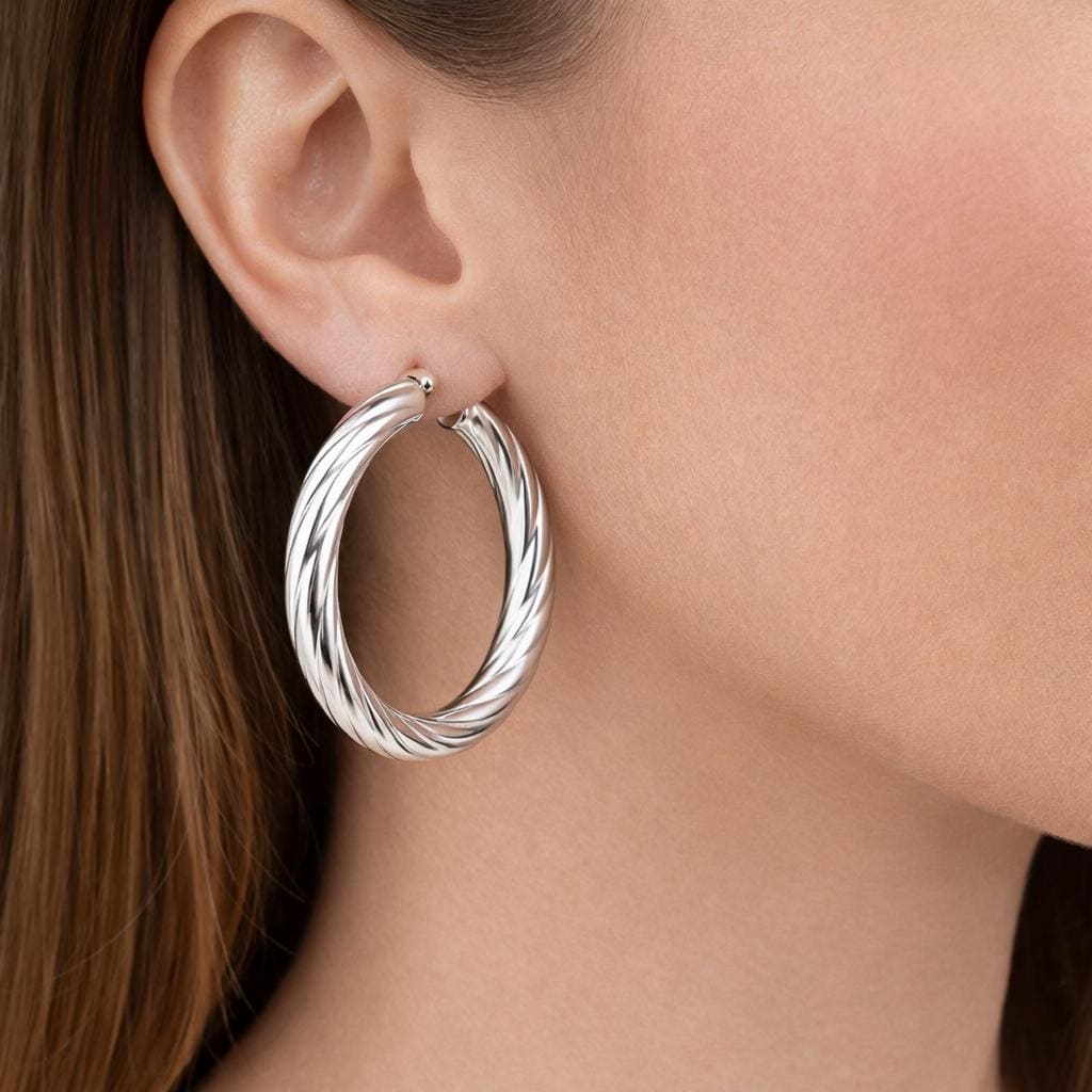 Thick hoop earrings in silver stainless steel.