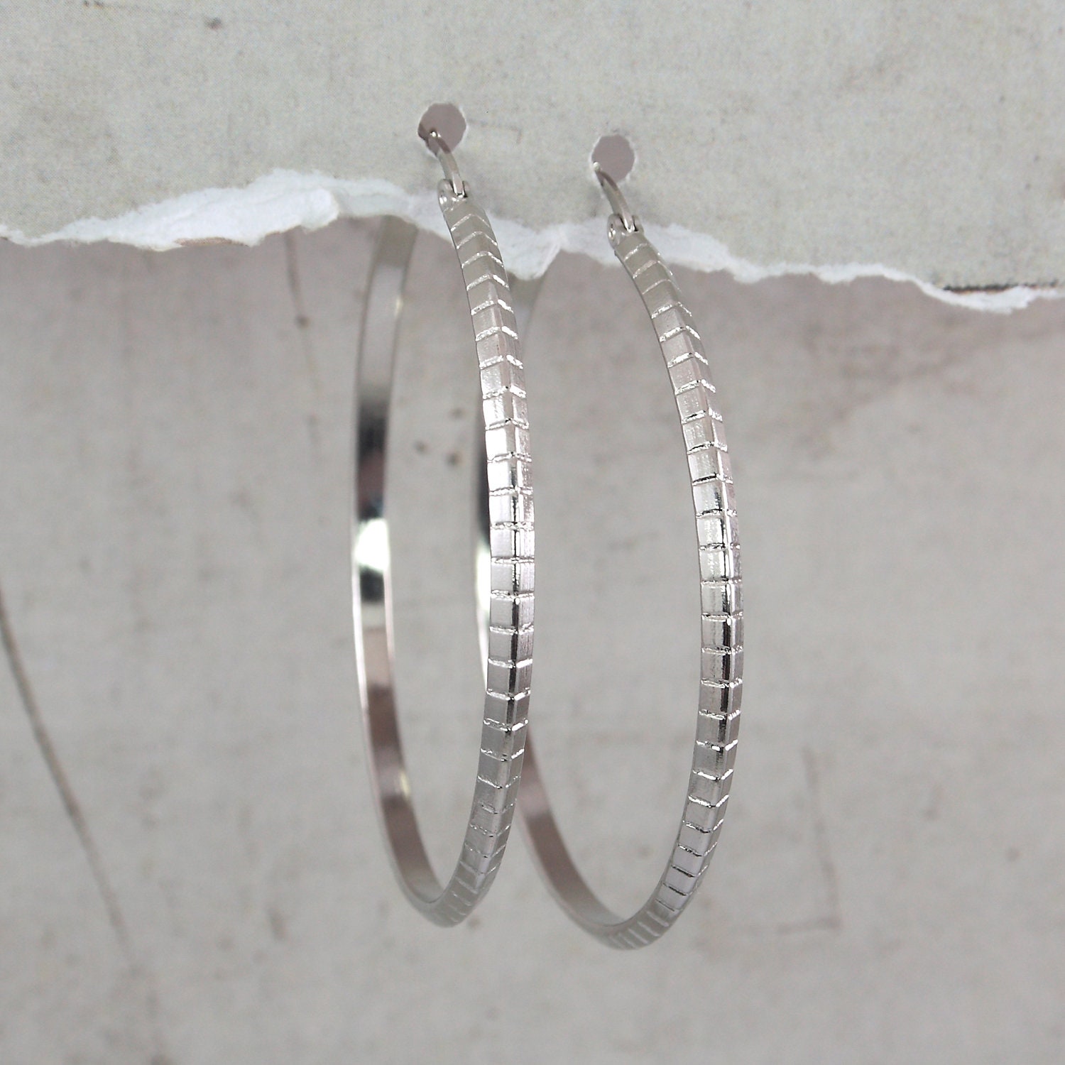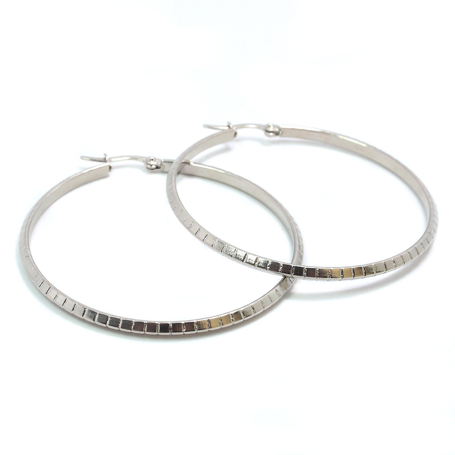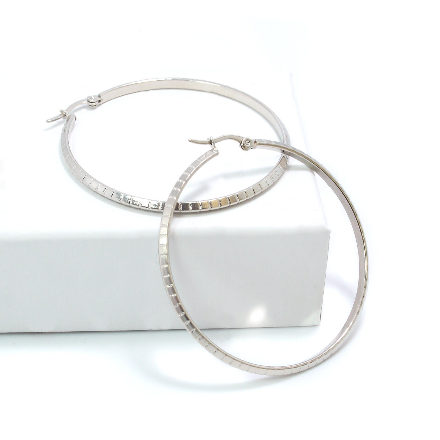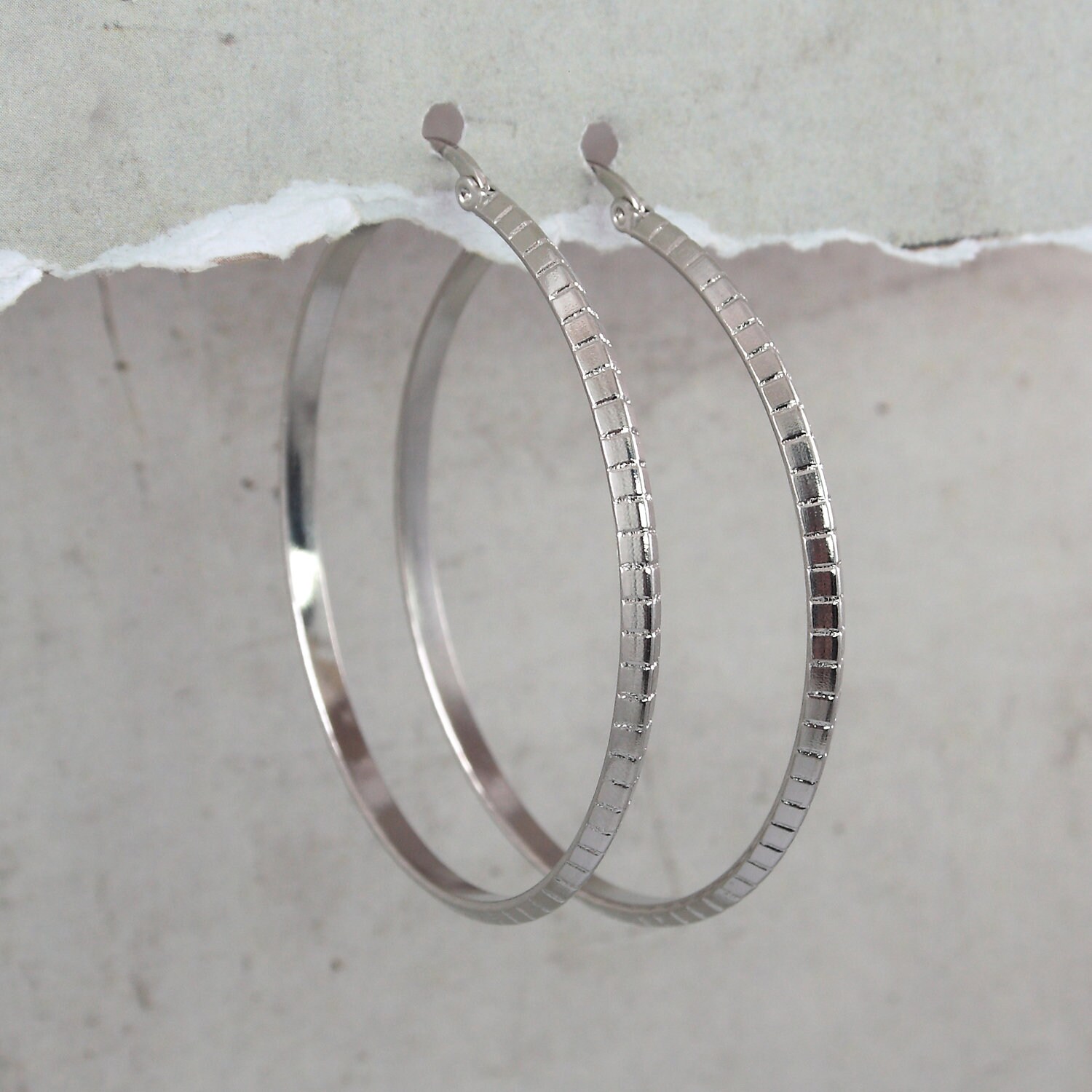 Boucles d'oreilles créoles en acier inoxydable argenté.