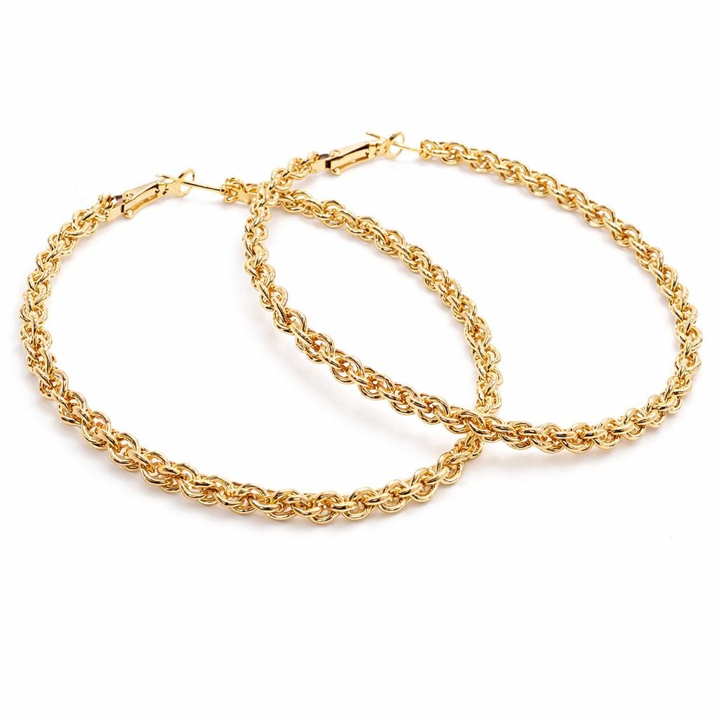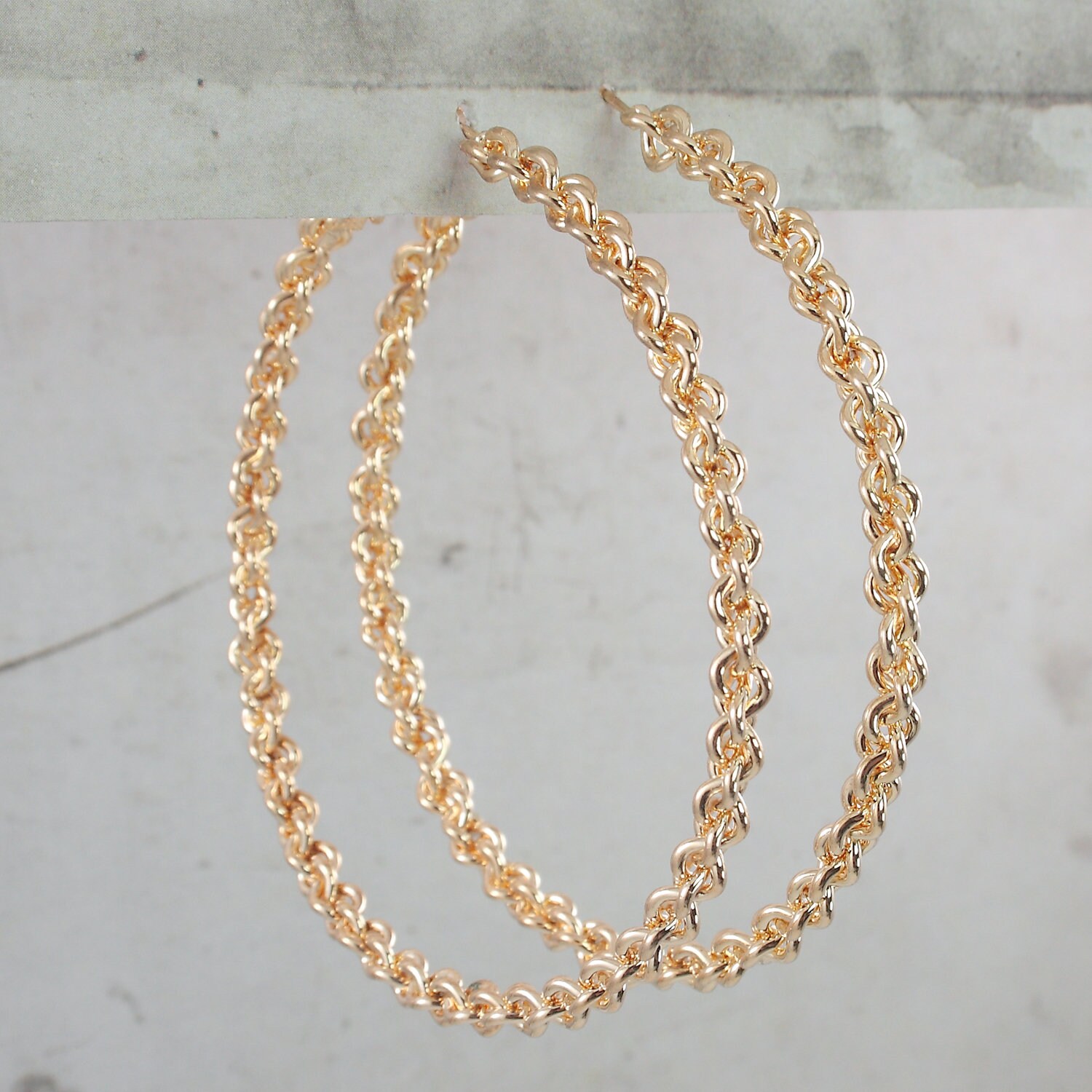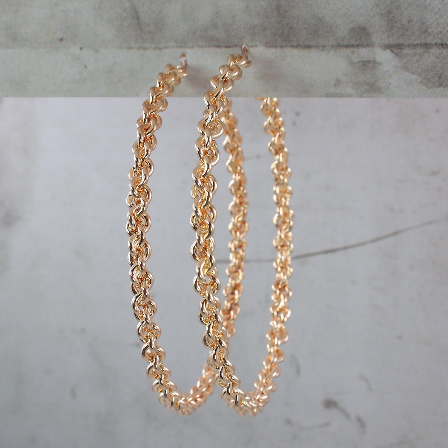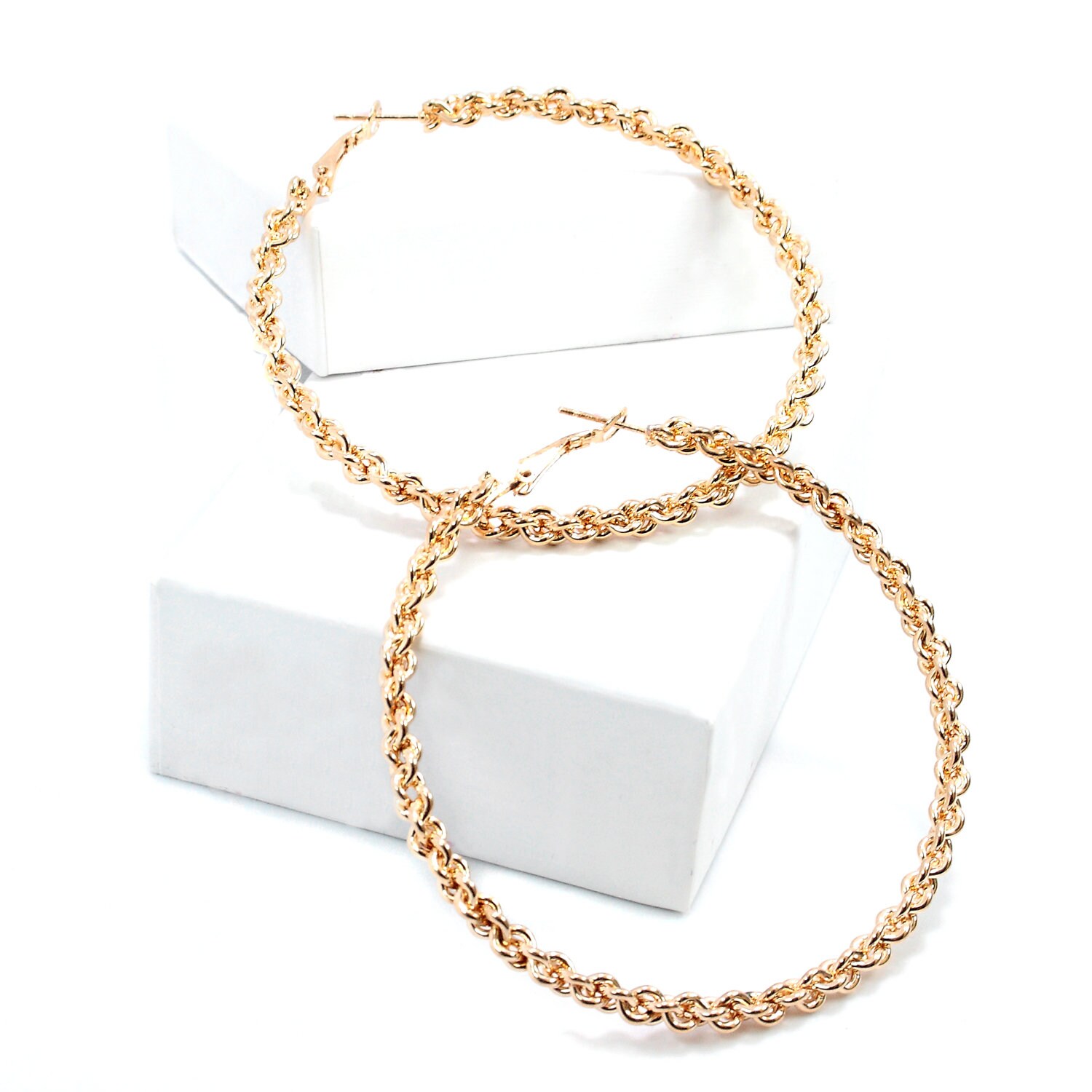 Boucles d'oreilles créoles XXL "maillons" en laiton doré.