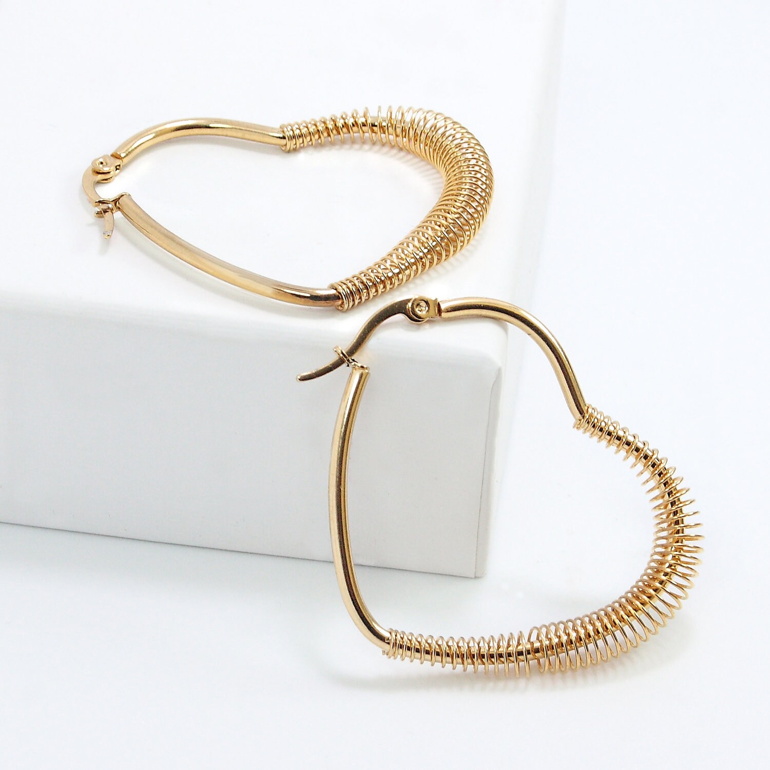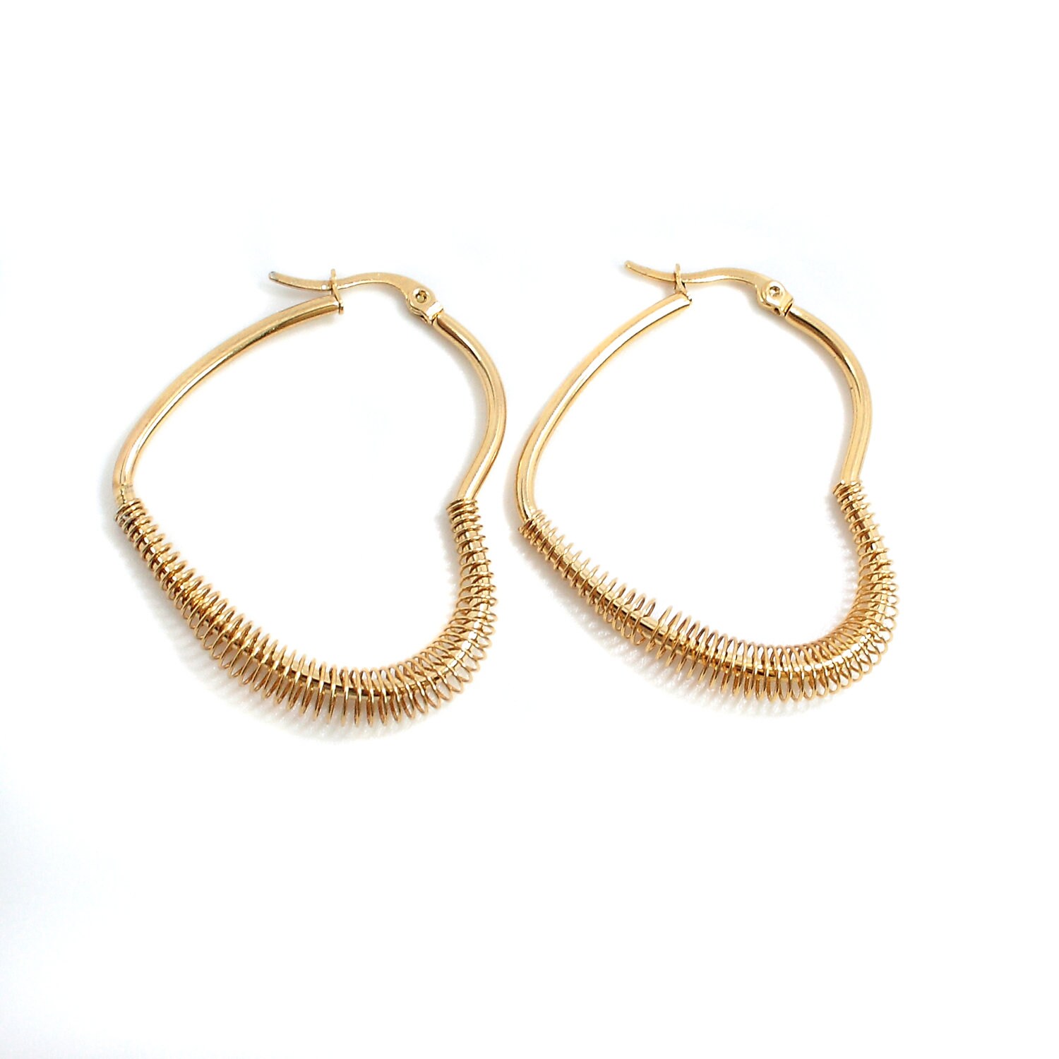 Boucles d'oreilles créoles "coeur" en acier inoxydable doré