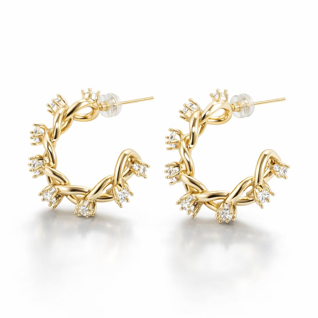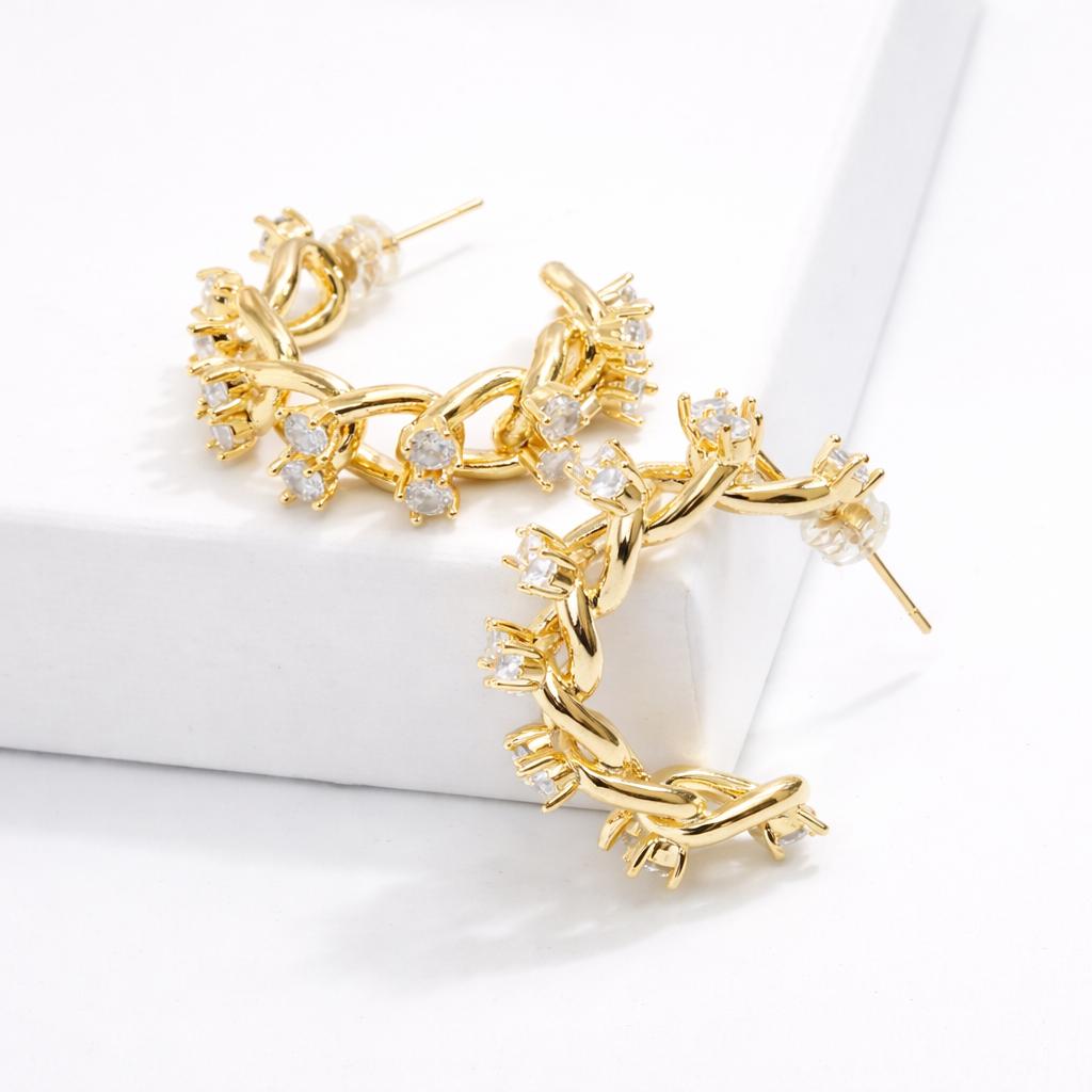 Gold-plated earrings in stainless steel and crystal rhinestones.