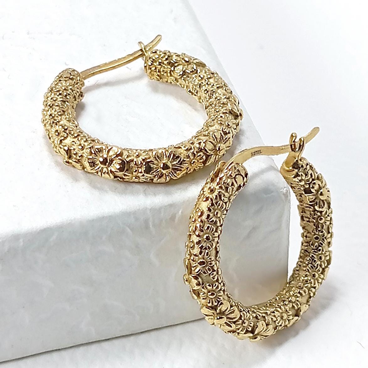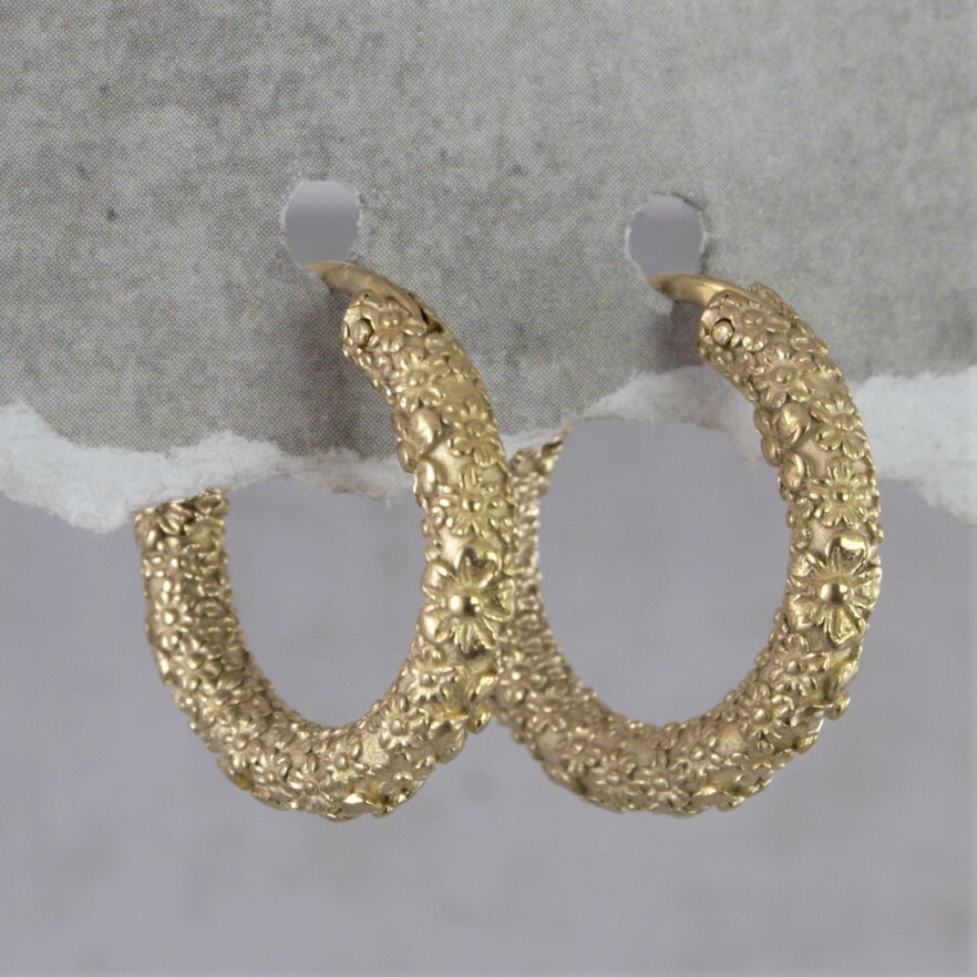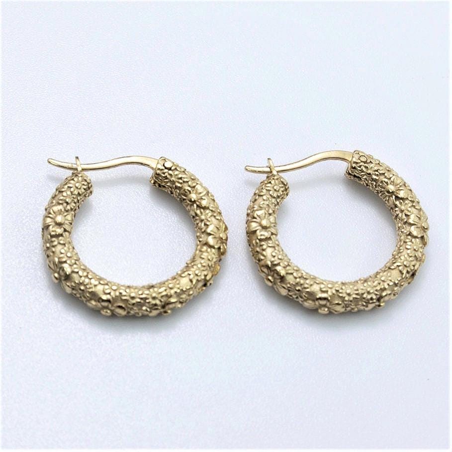 Mini gold-plated hoop earrings in gold-plated alloy with a "flower" motif.