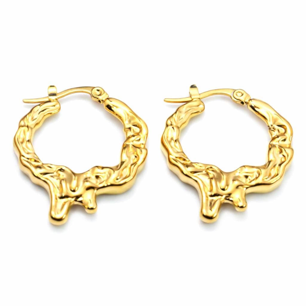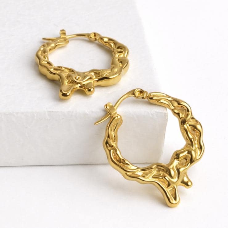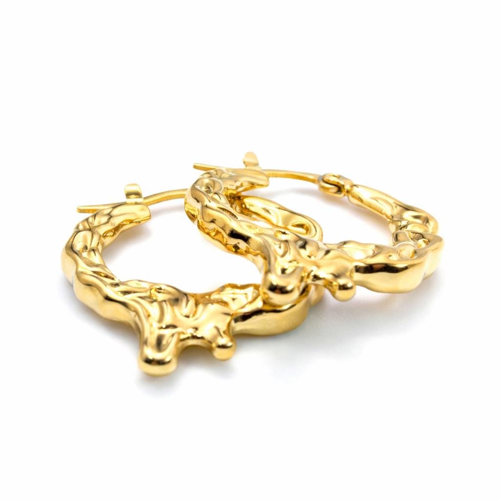 Thick hoop earrings in gold-plated stainless steel.