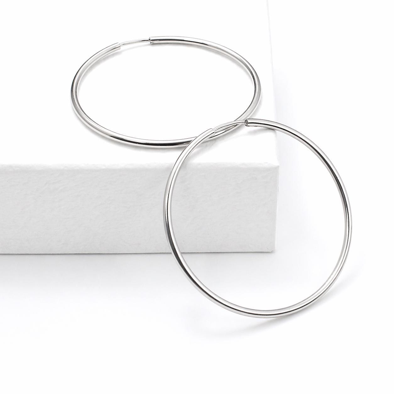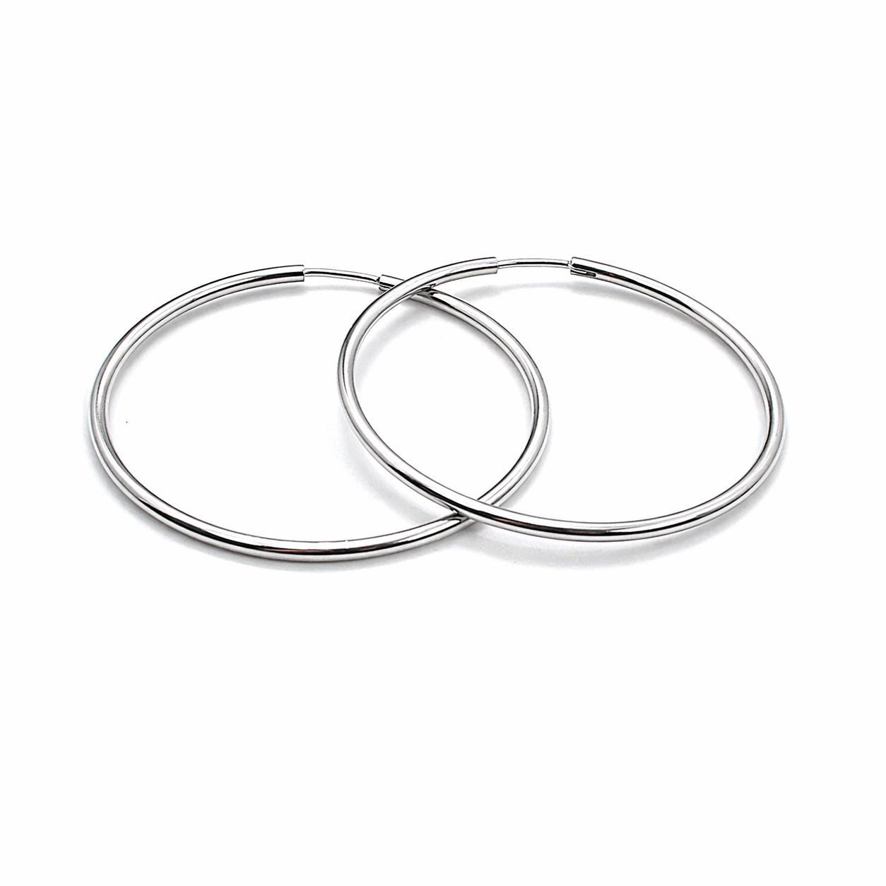 Fines boucles d'oreilles créoles en acier inoxydable argent.