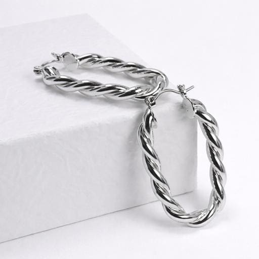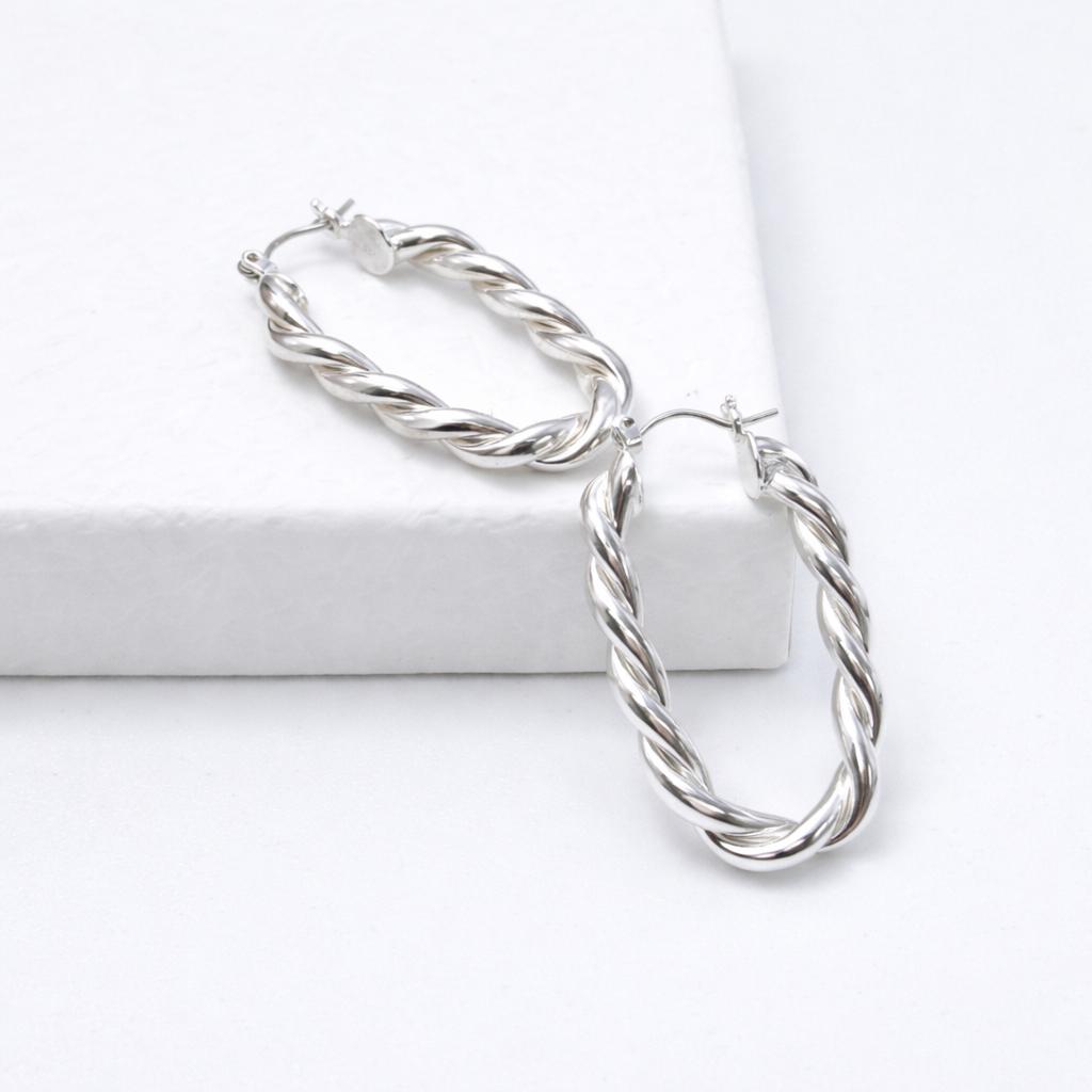 Twisted hoop earrings in silver-plated brass.