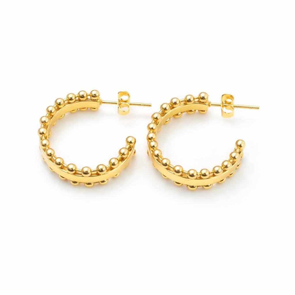 Mini boucles d'oreilles créoles ouvertes en laiton doré.