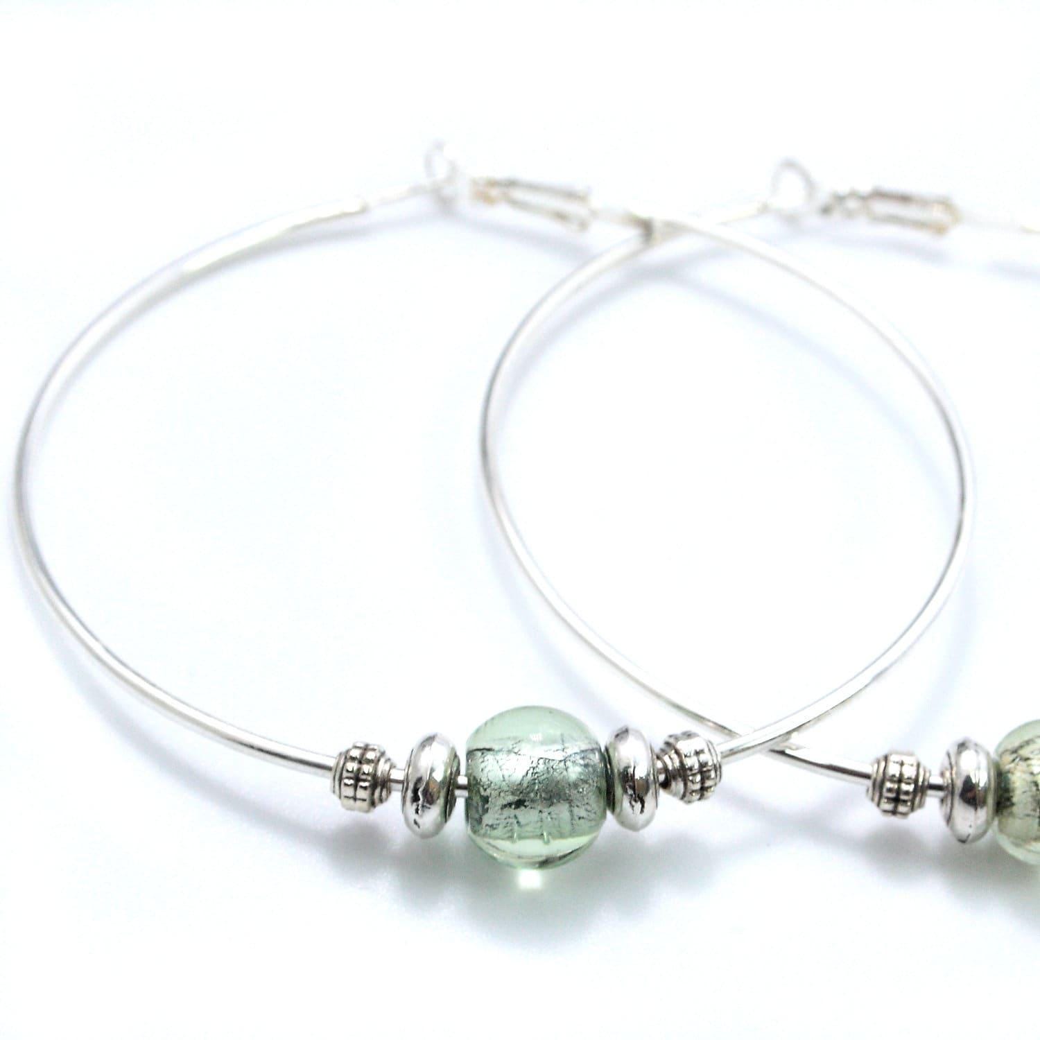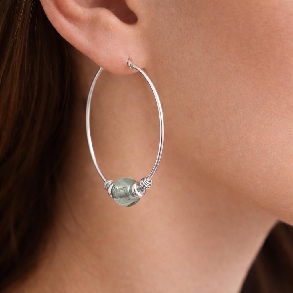 XXL hoop earrings in silver-plated metal adorned with a recycled glass bead* and small silver beads.