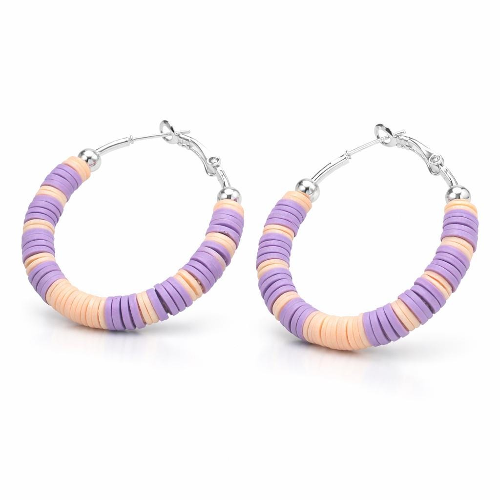 Silver brass hoop earrings, adorned with mauve and pink silicone beads and aged silver brass beads.