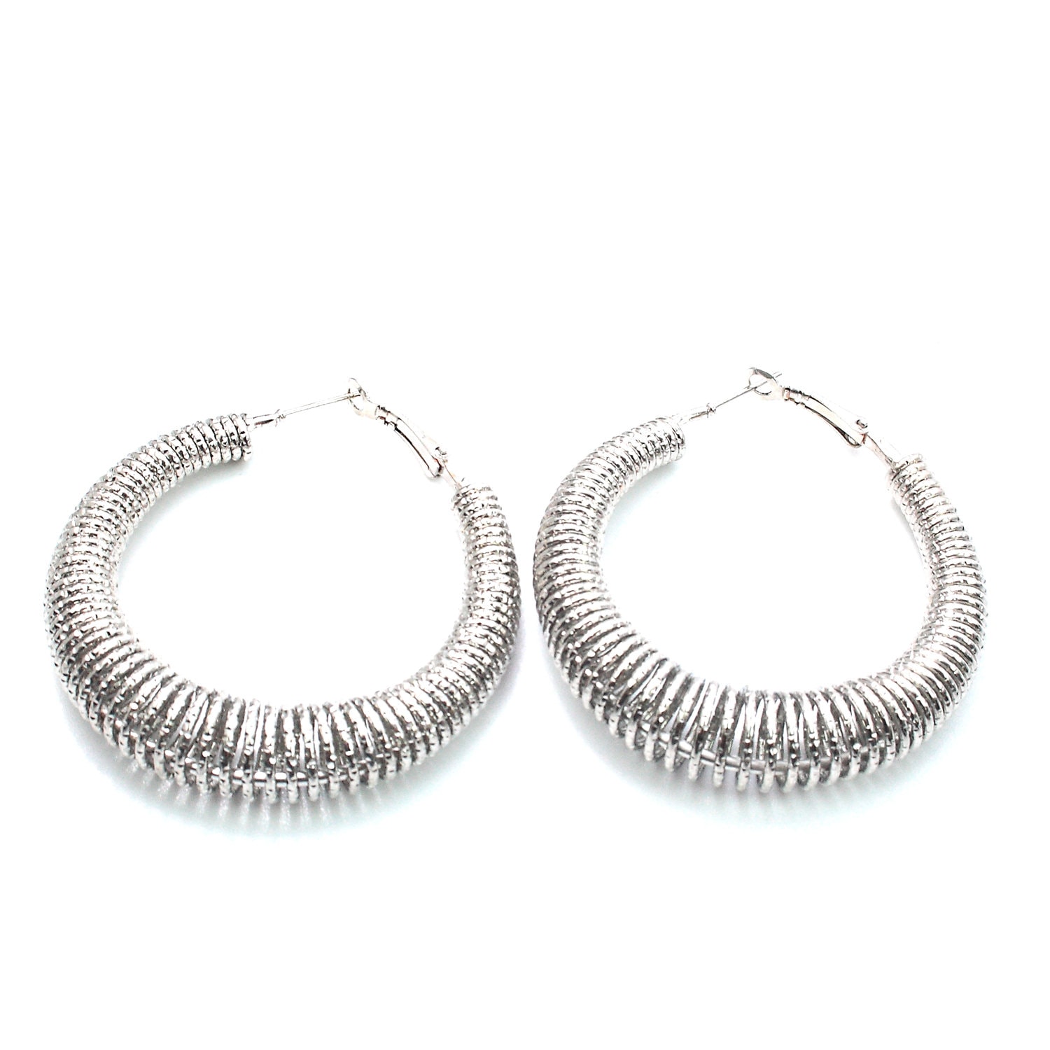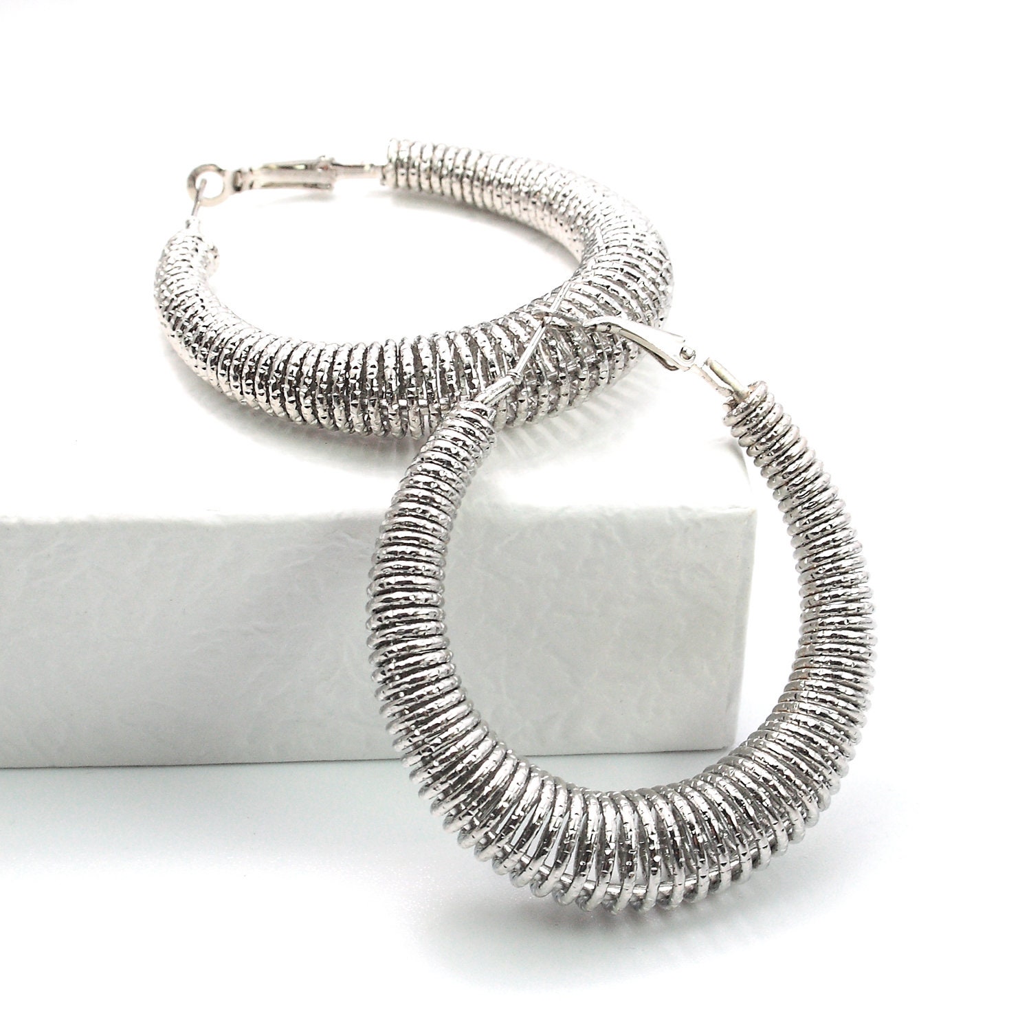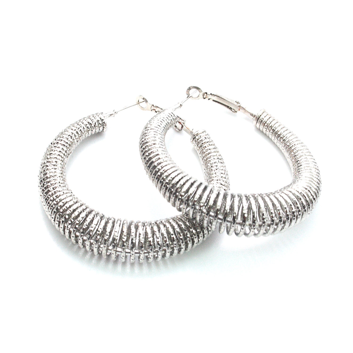 Boucles d'oreilles créoles épaisses spirale en laiton argent.