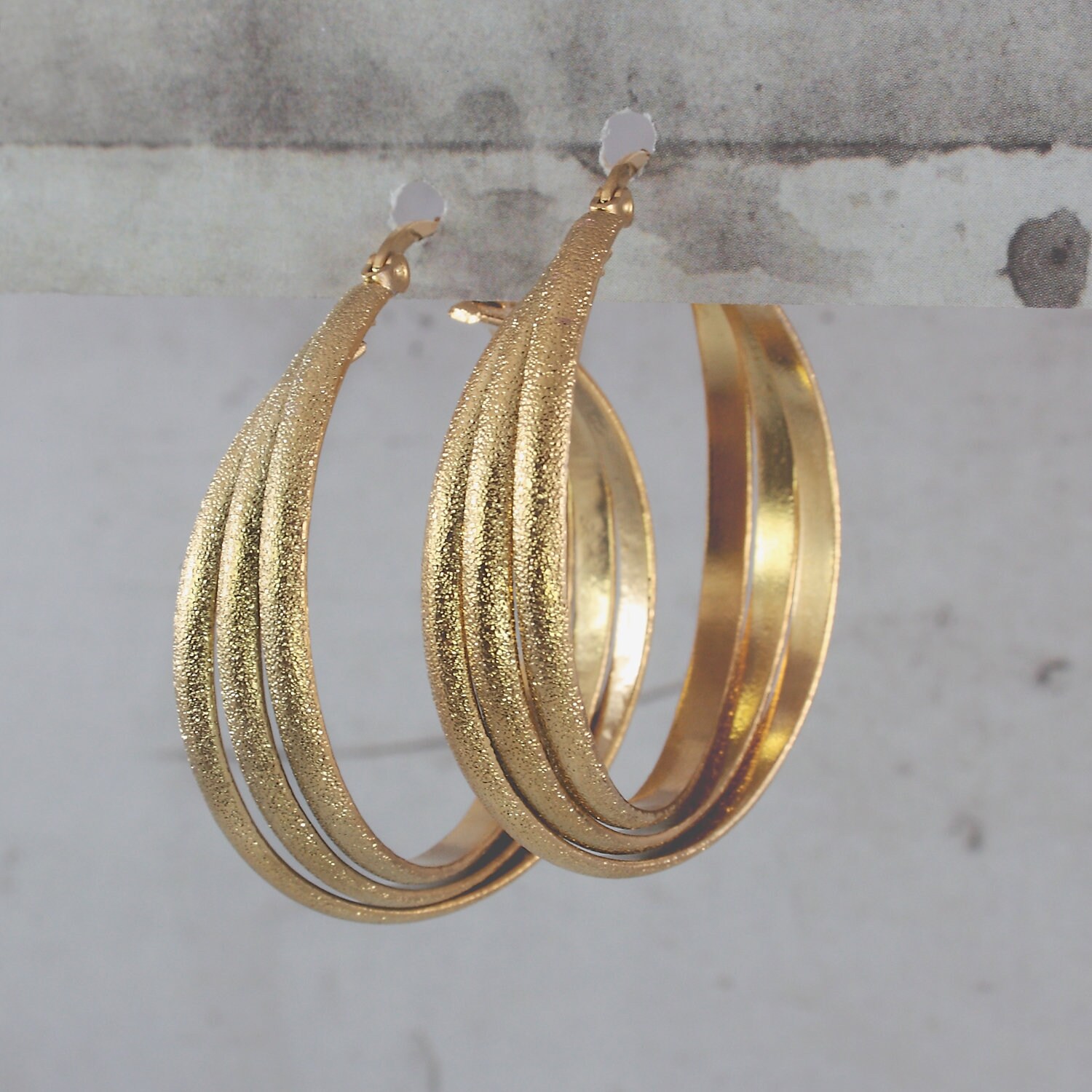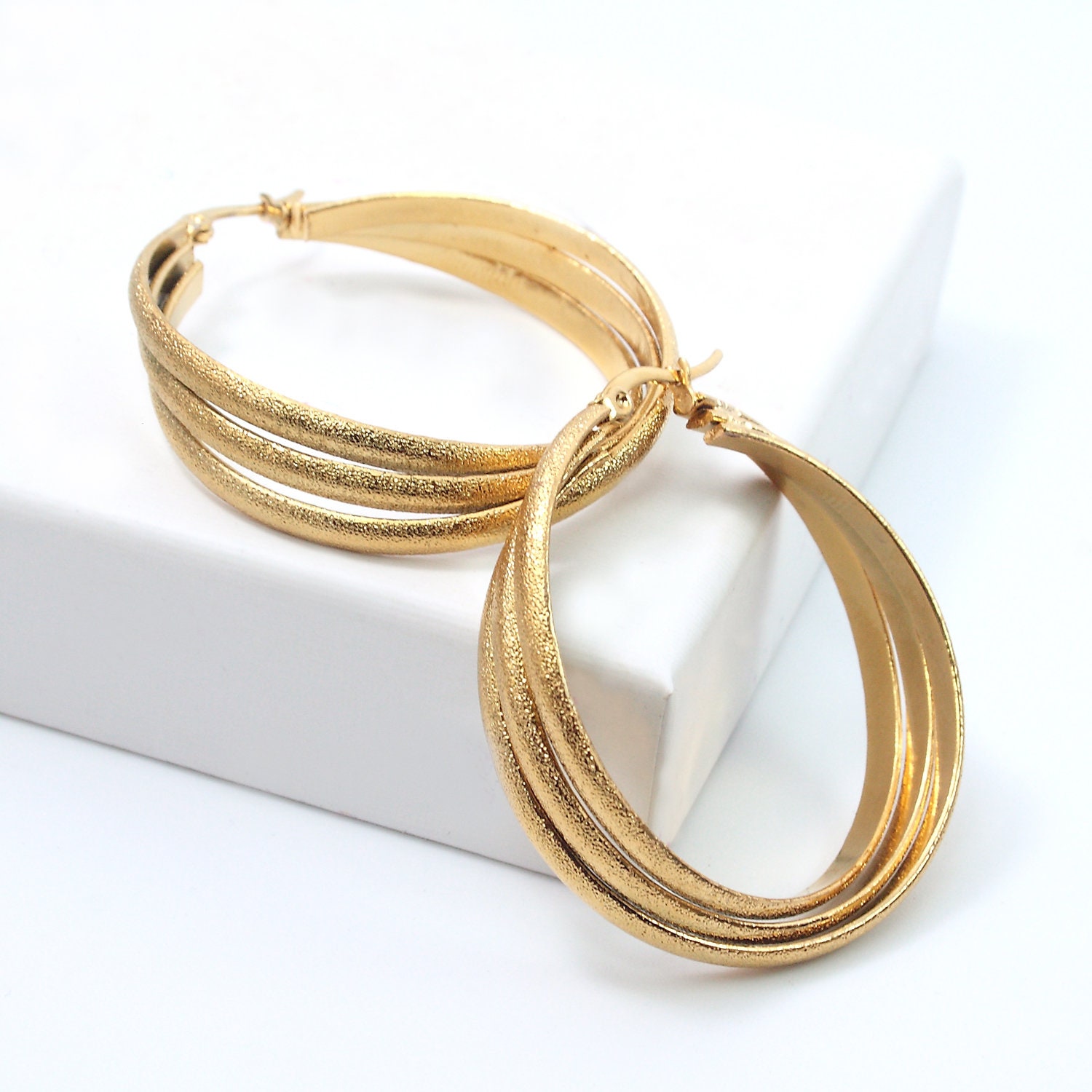 Triple hoop earrings in gold-plated brass.