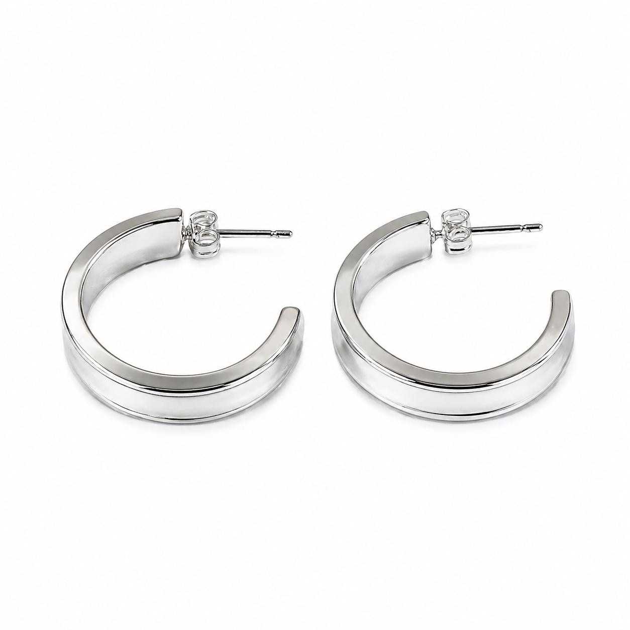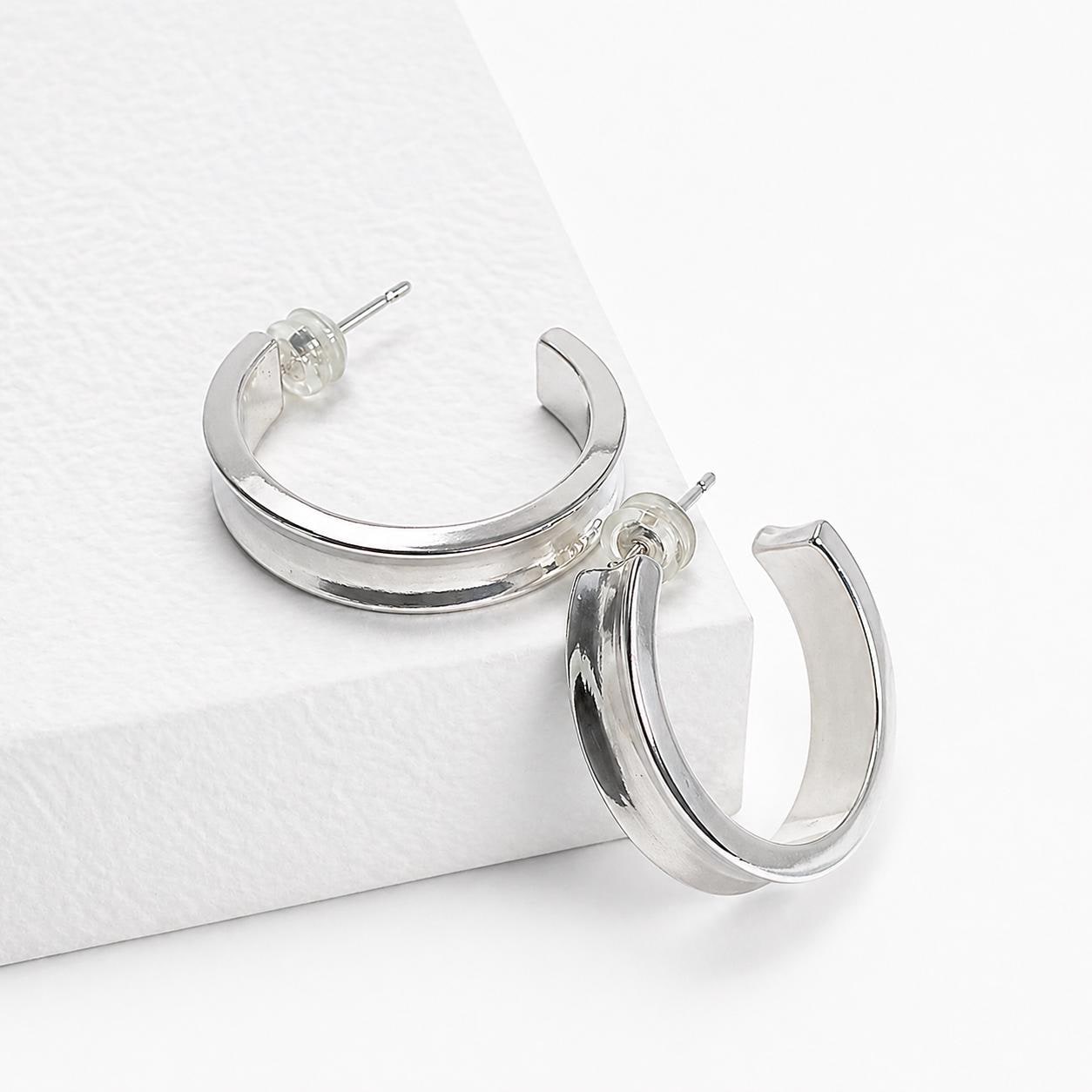 Thick hoop earrings in brass plated with 925 silver.