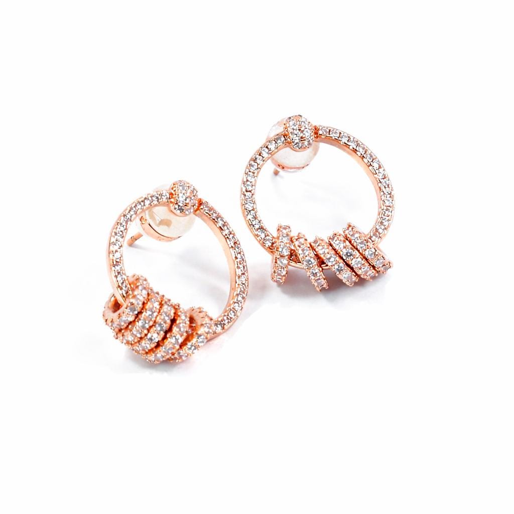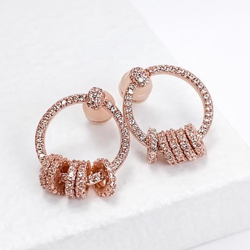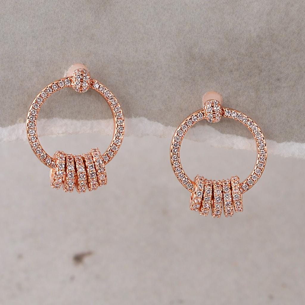 Mini hoop earrings in rose gold metal, adorned with zircon.