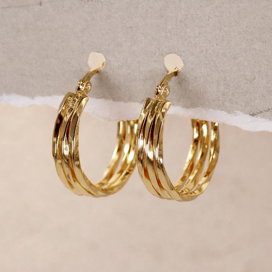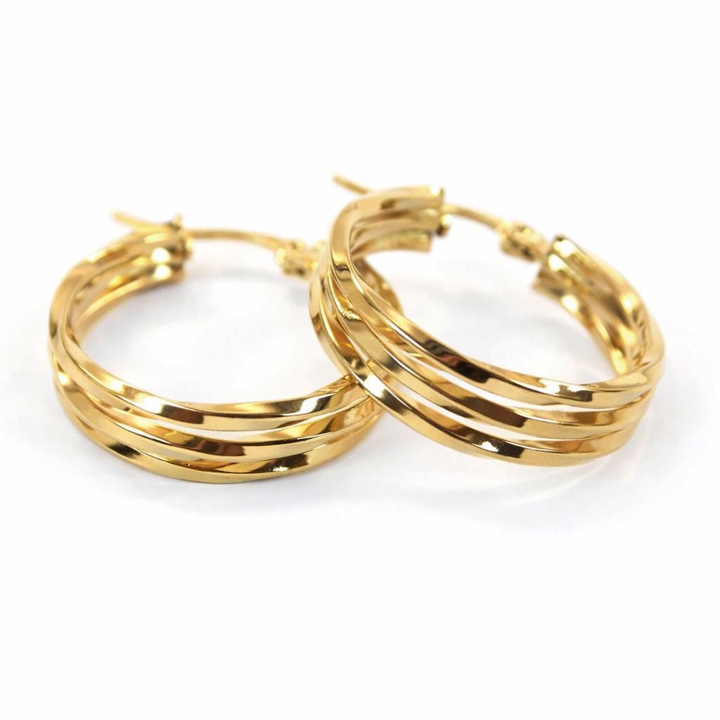 Thick hoop earrings in gold-plated stainless steel.