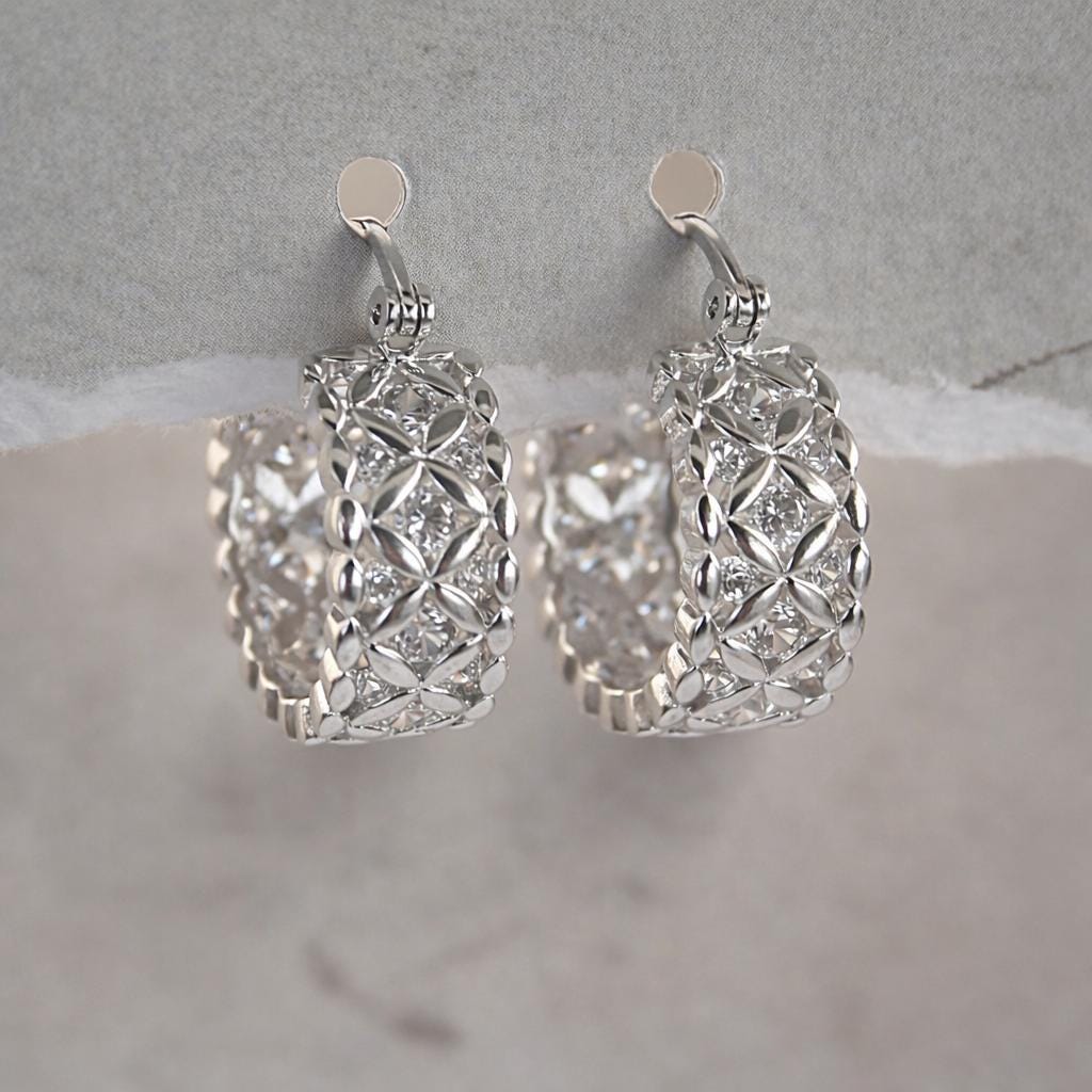 Mini thick hoop earrings in 925 silver-plated brass adorned with zircon rhinestones.