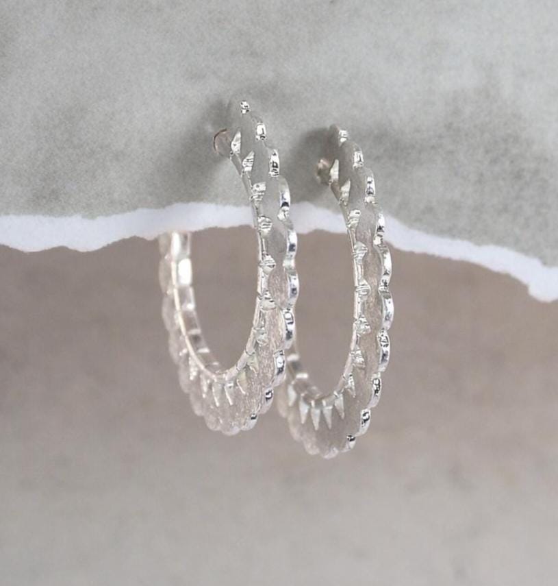 Half-hoop earrings in 925 silver-plated brass with an "aged" look