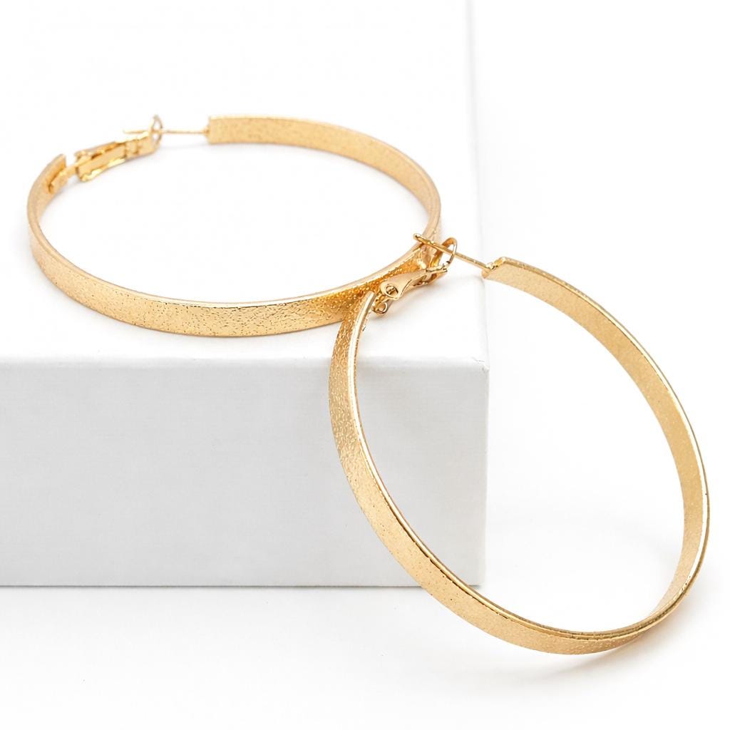 Gold-plated brass hoop earrings.