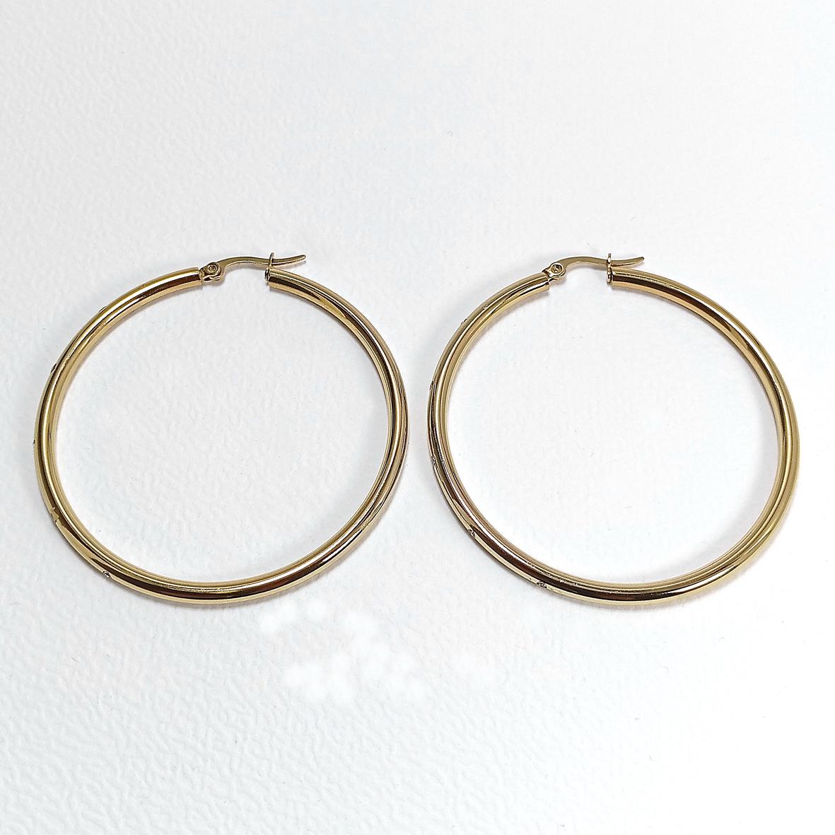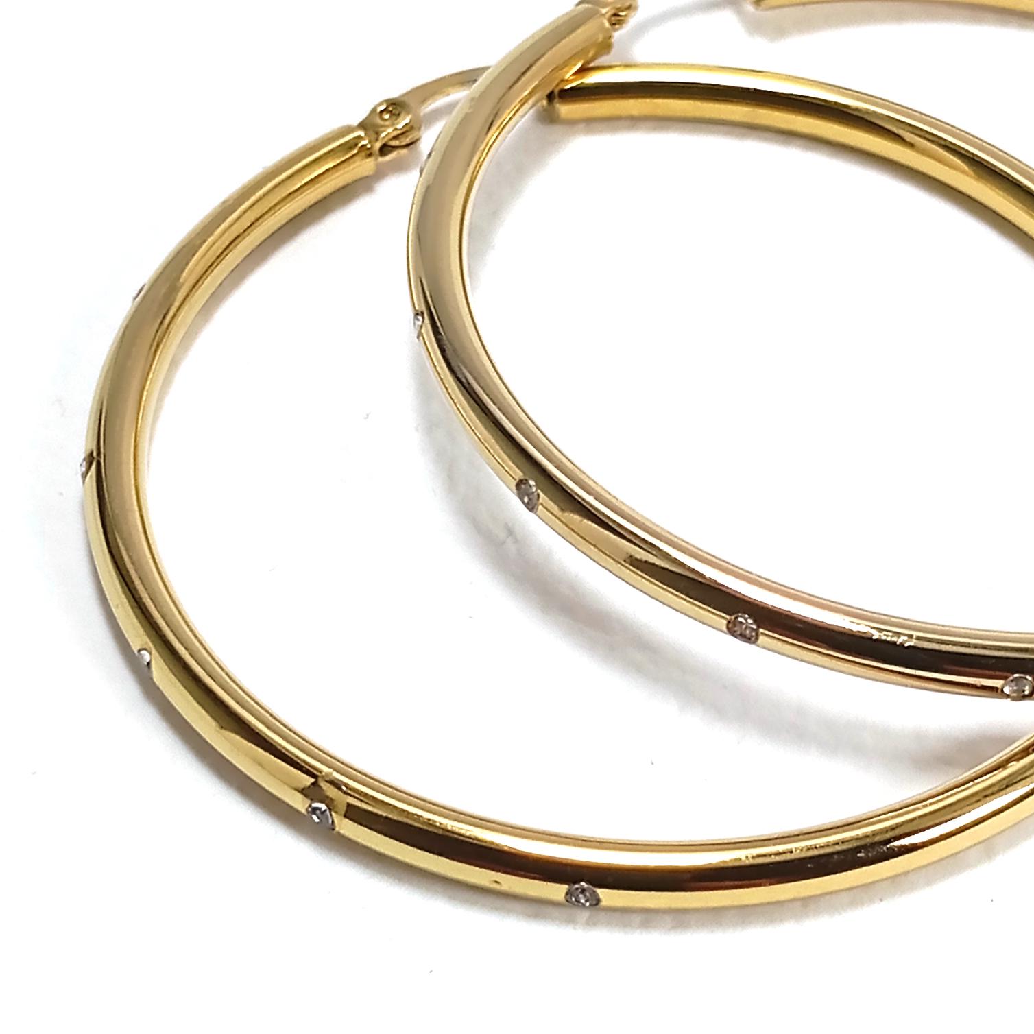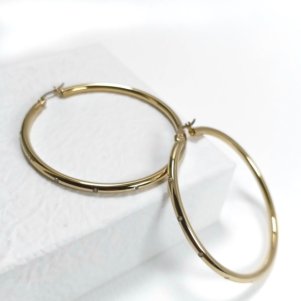 Gold-plated stainless steel and rhinestone hoop earrings.