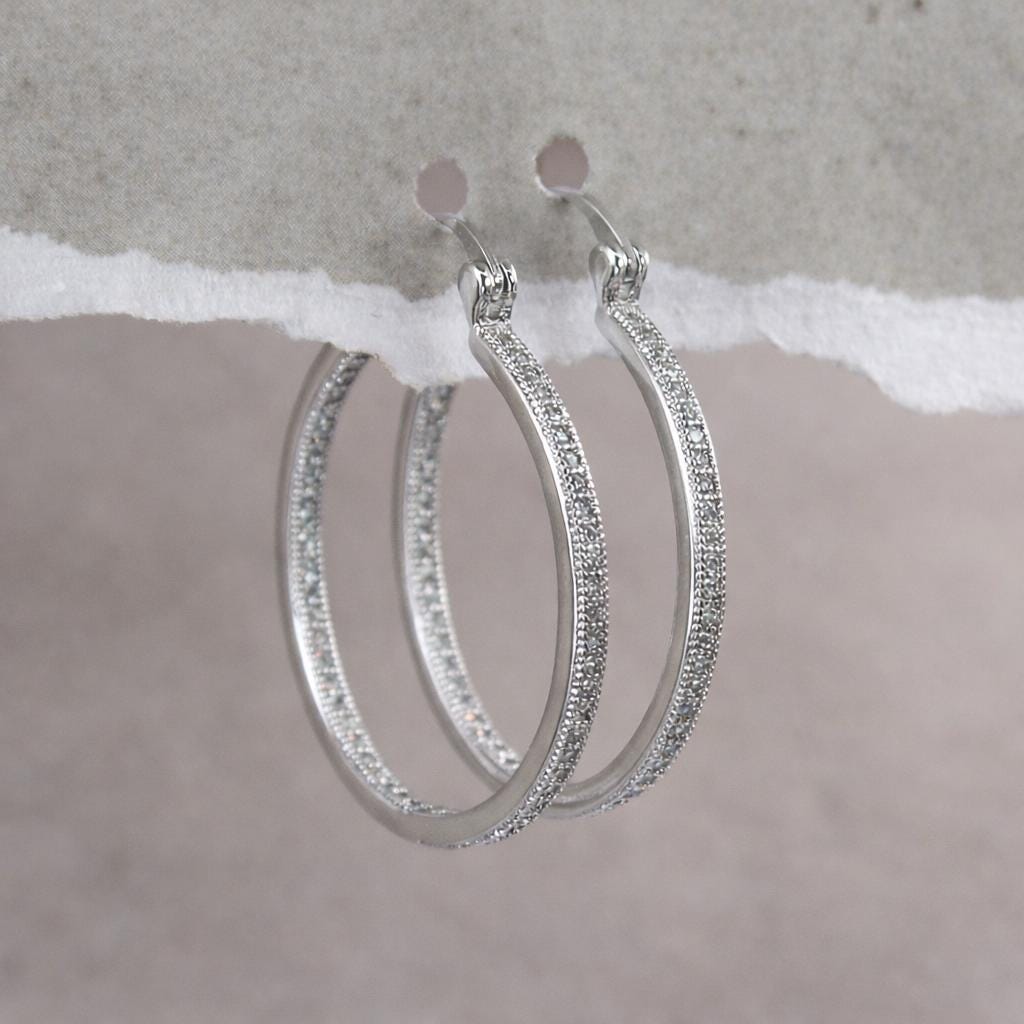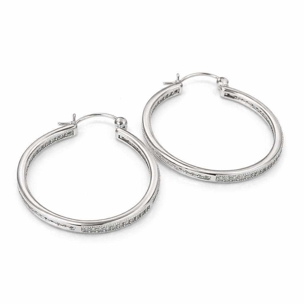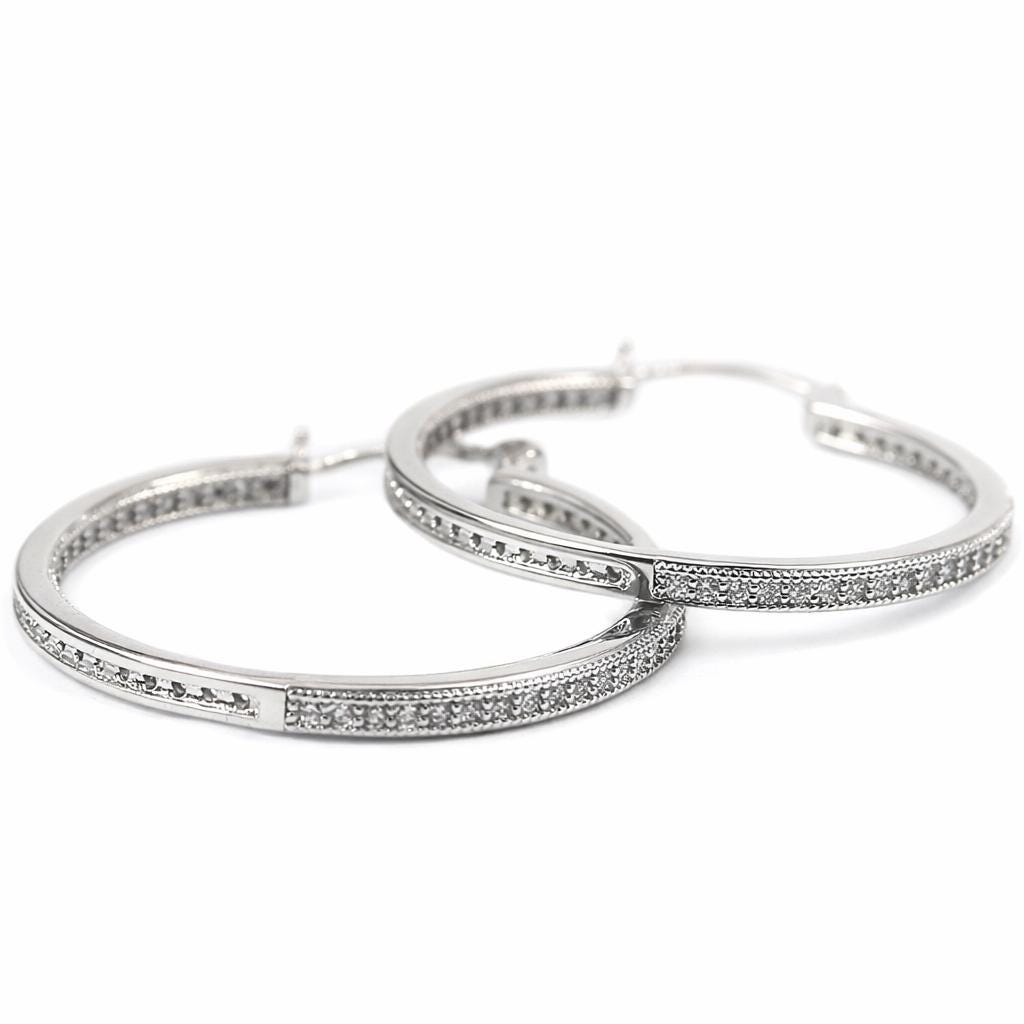 Hoop earrings in silver-plated brass and zircon.