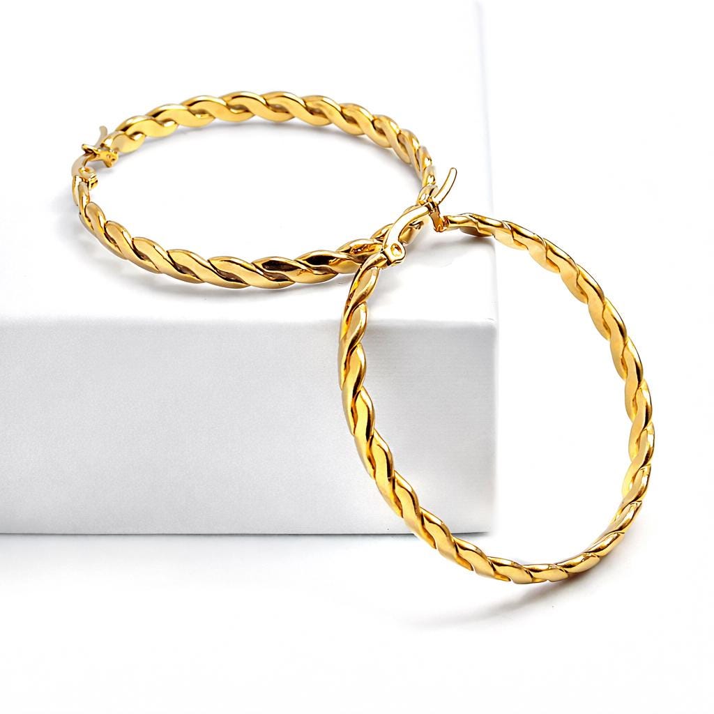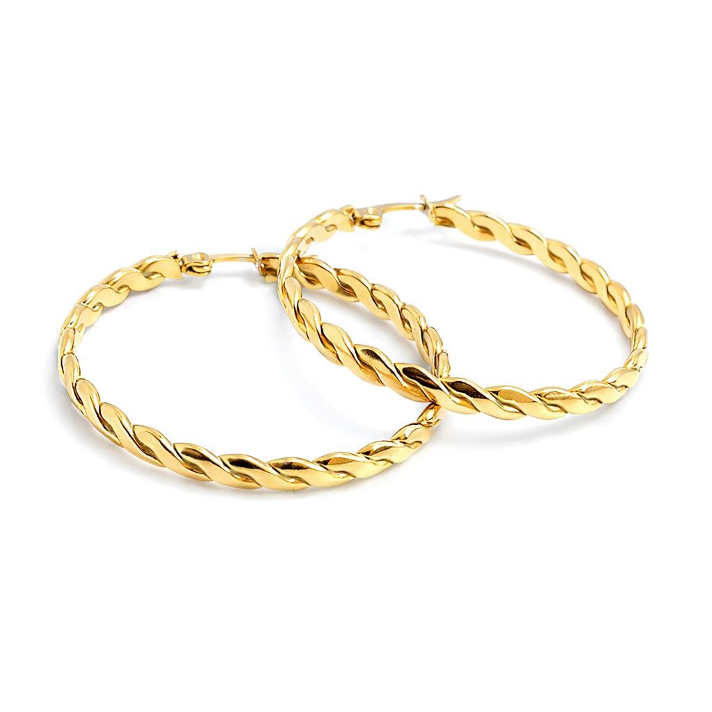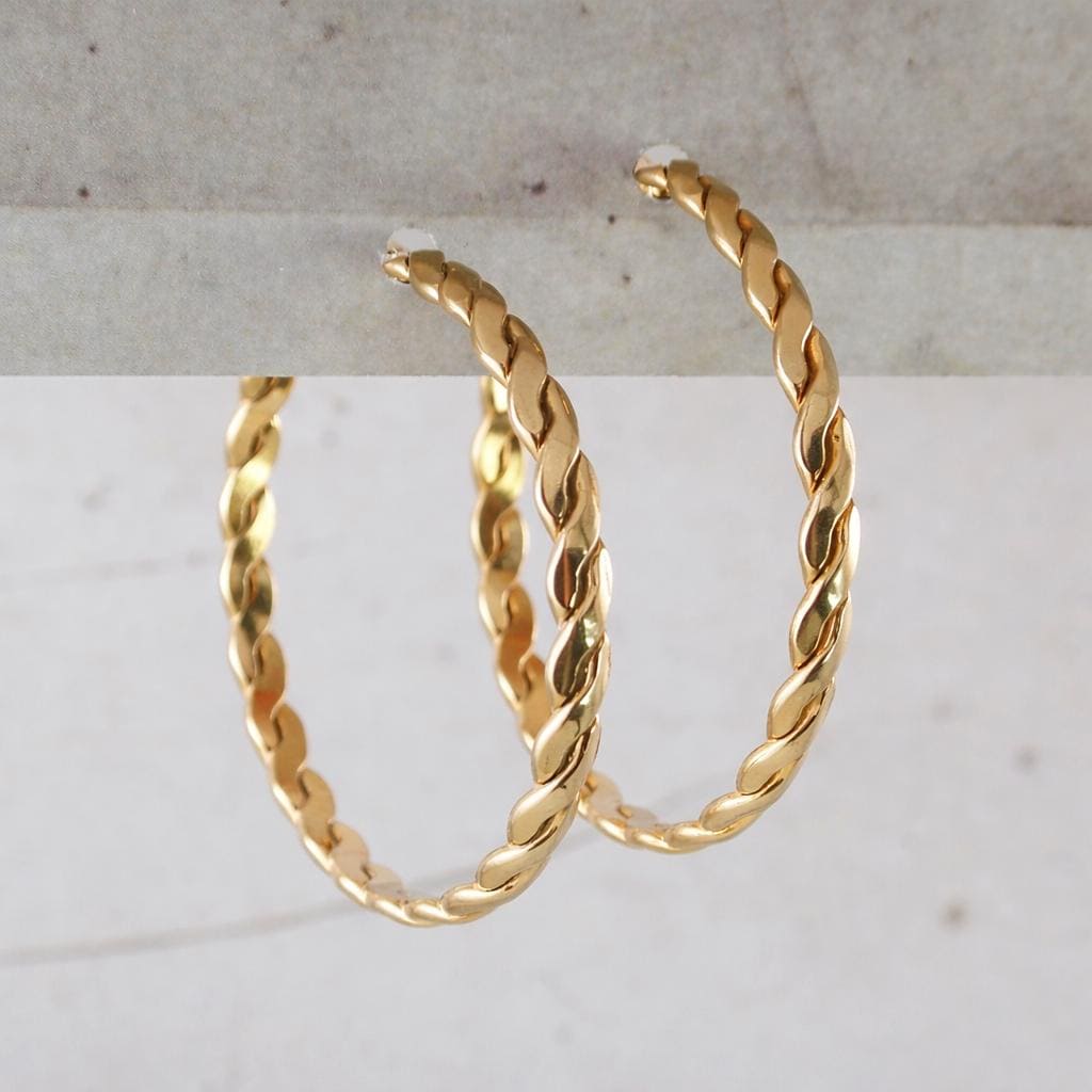 Gold-plated stainless steel hoop earrings.