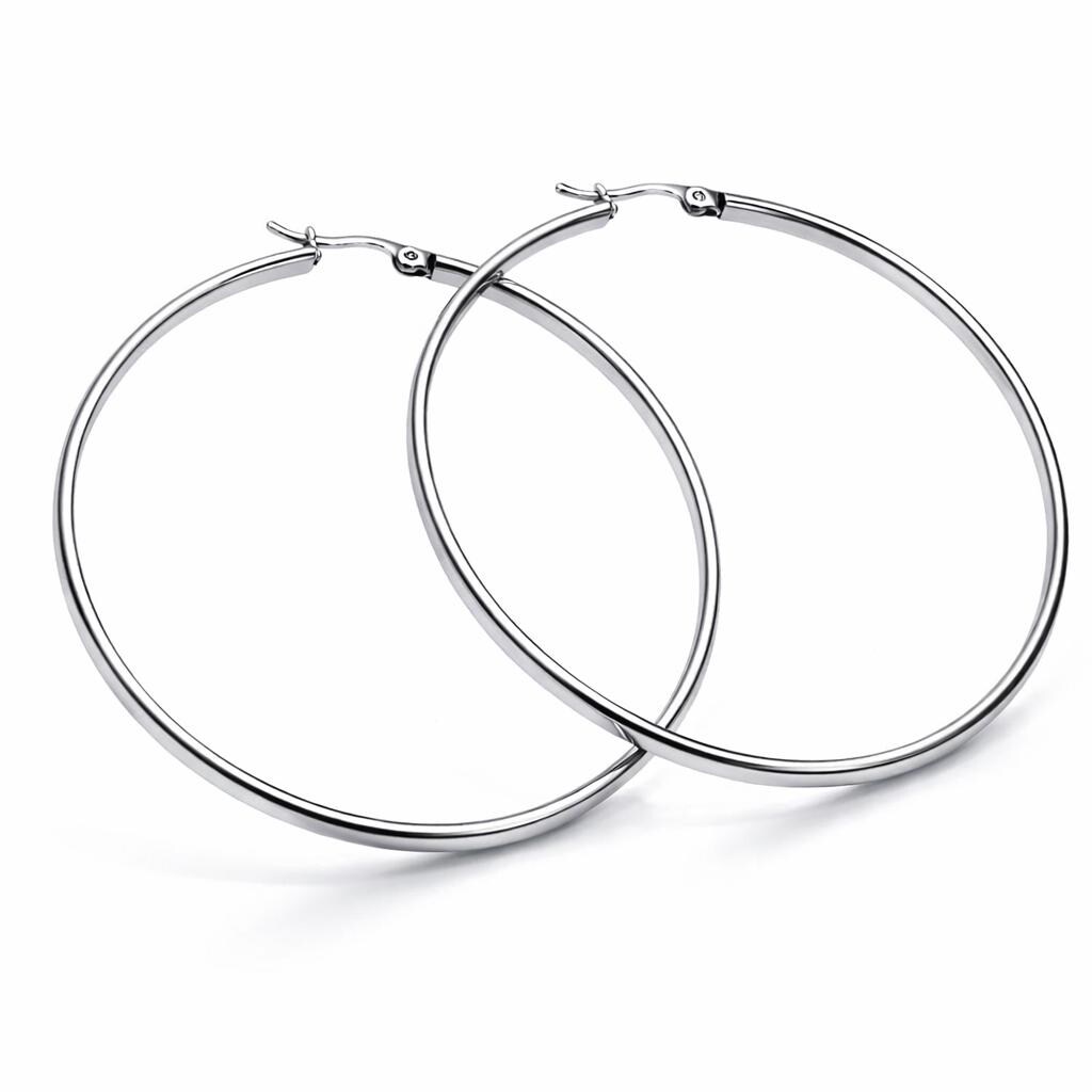 Boucles d’oreilles créoles épaisses en acier inoxydable argenté ou doré