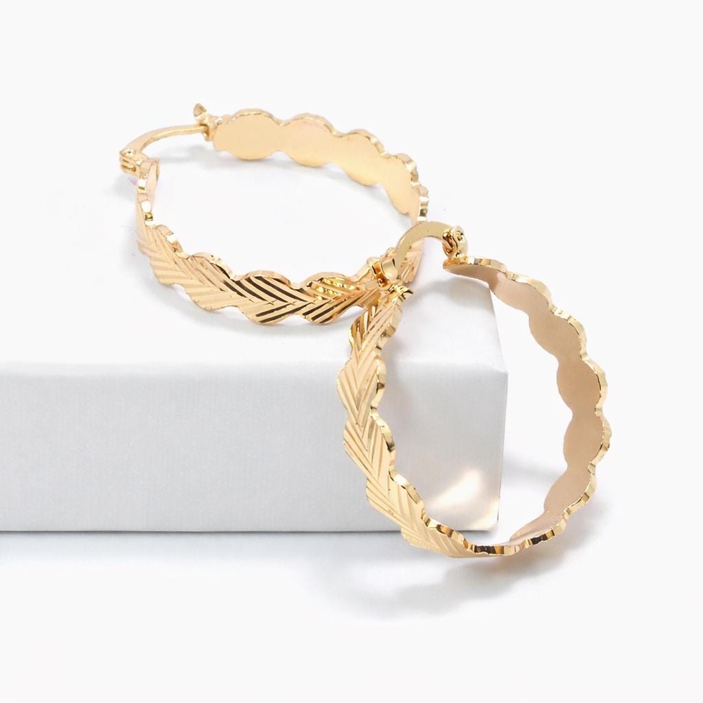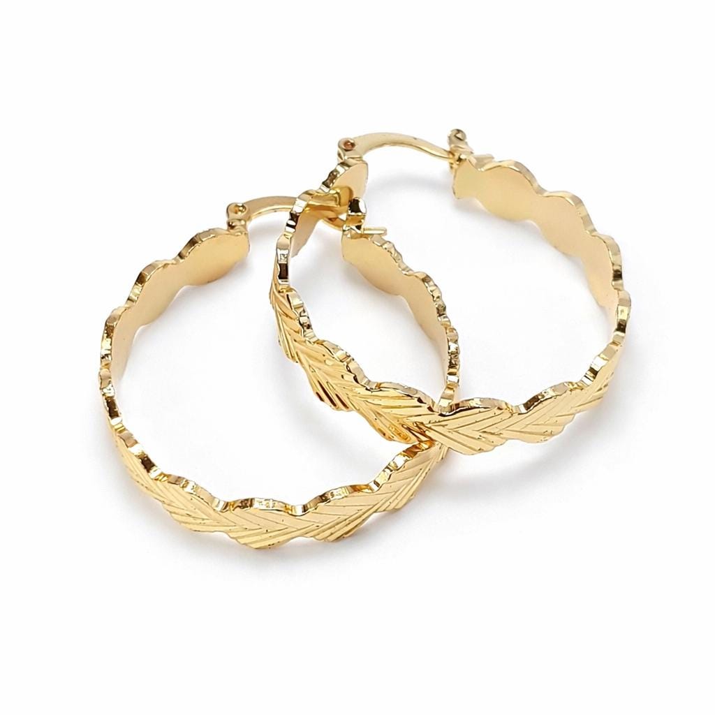 Gold-plated brass hoop earrings.
