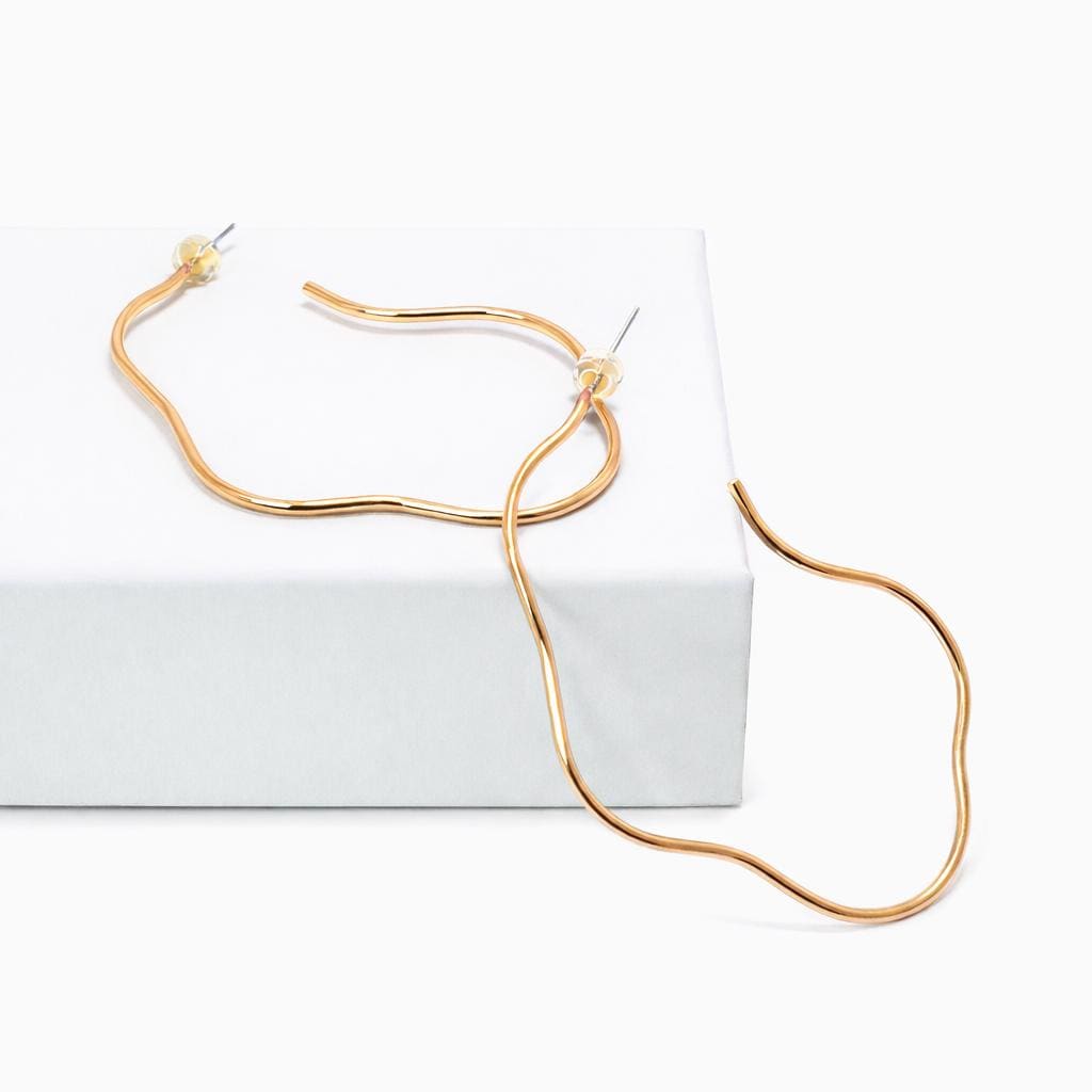 Fine wavy brass hoop earrings.
