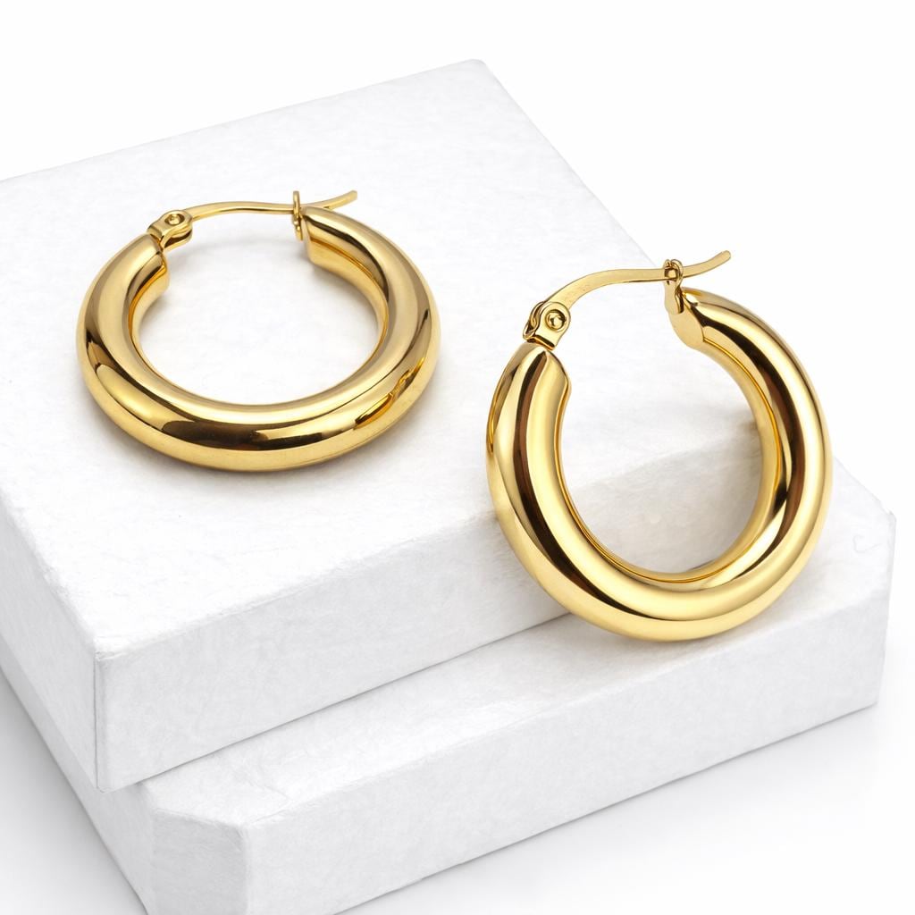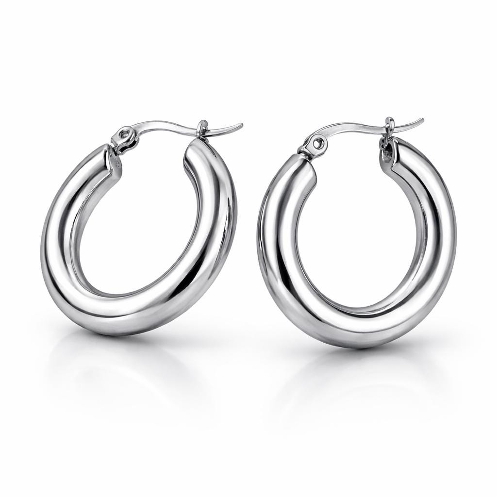 Small stainless steel hoop earrings.