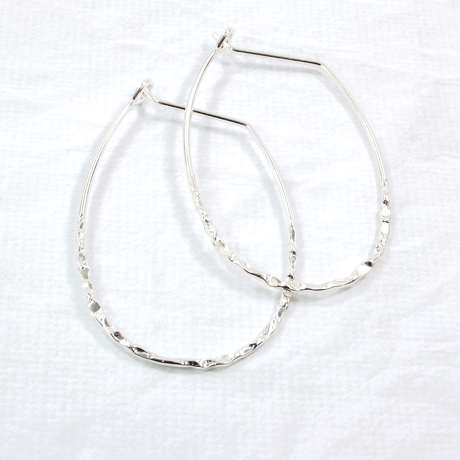 Fines boucles d'oreilles créoles en laiton argent ou doré martelé.