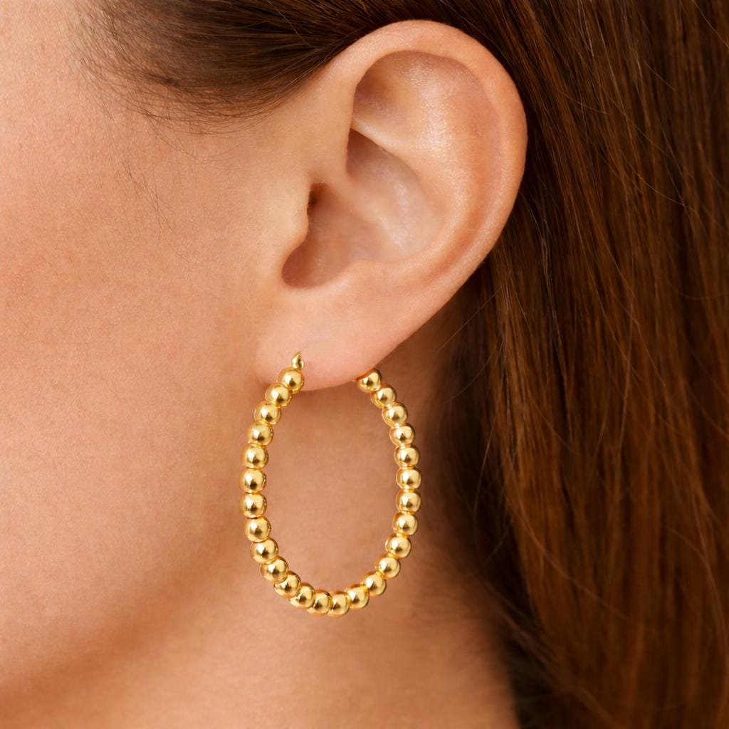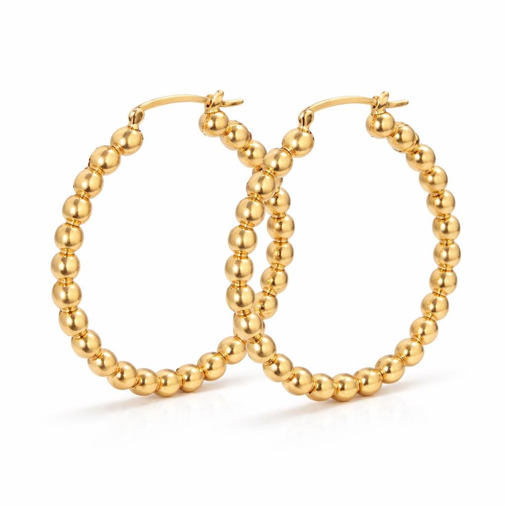 Gold-plated stainless steel hoop earrings.